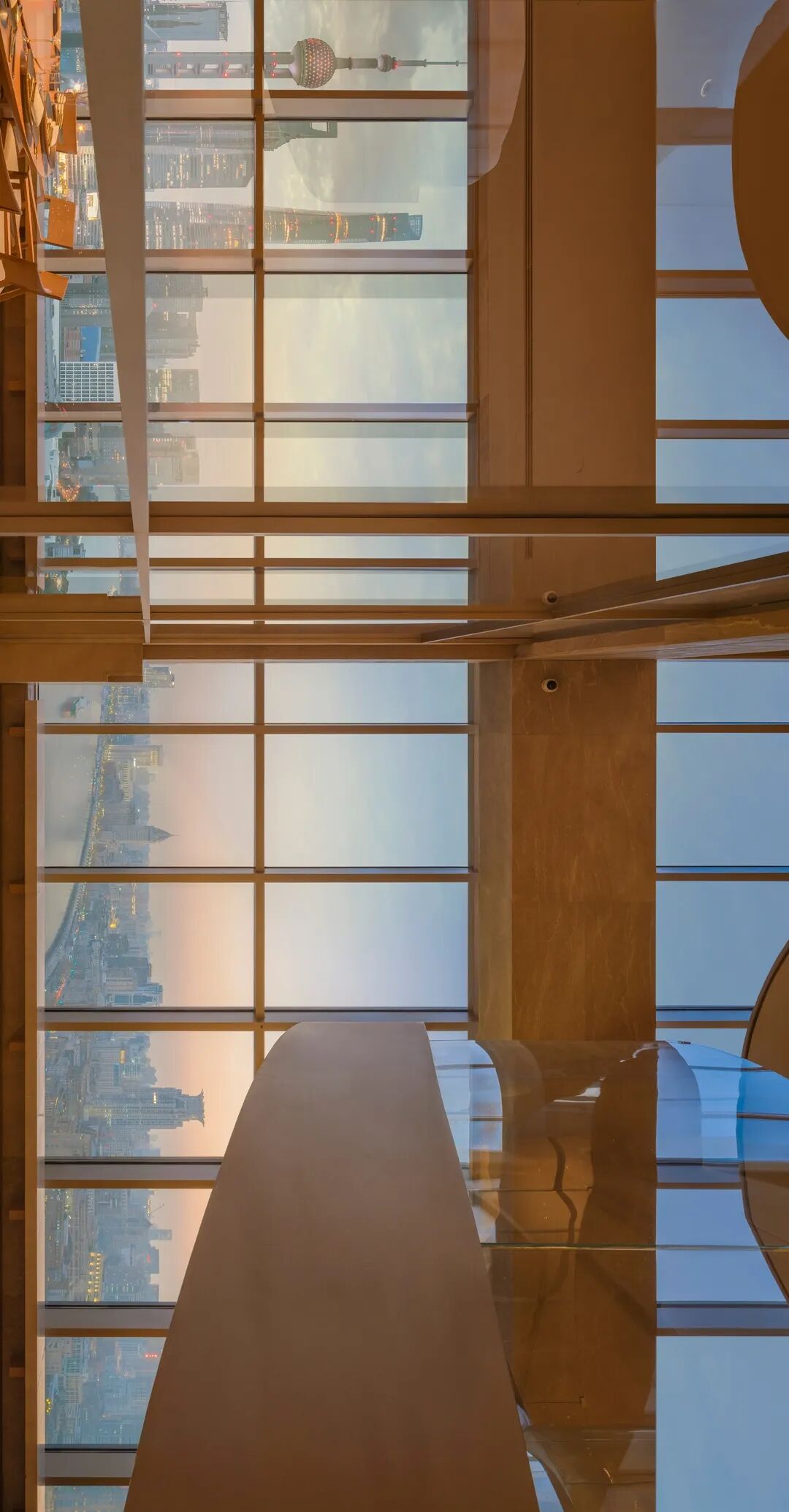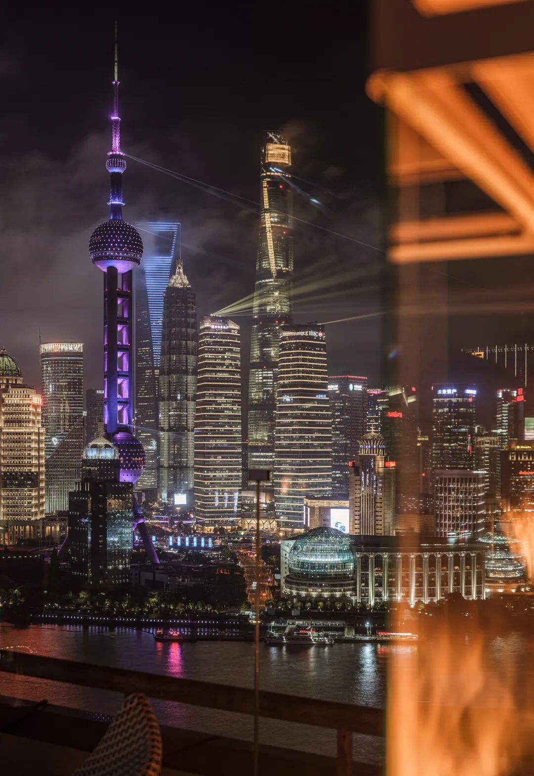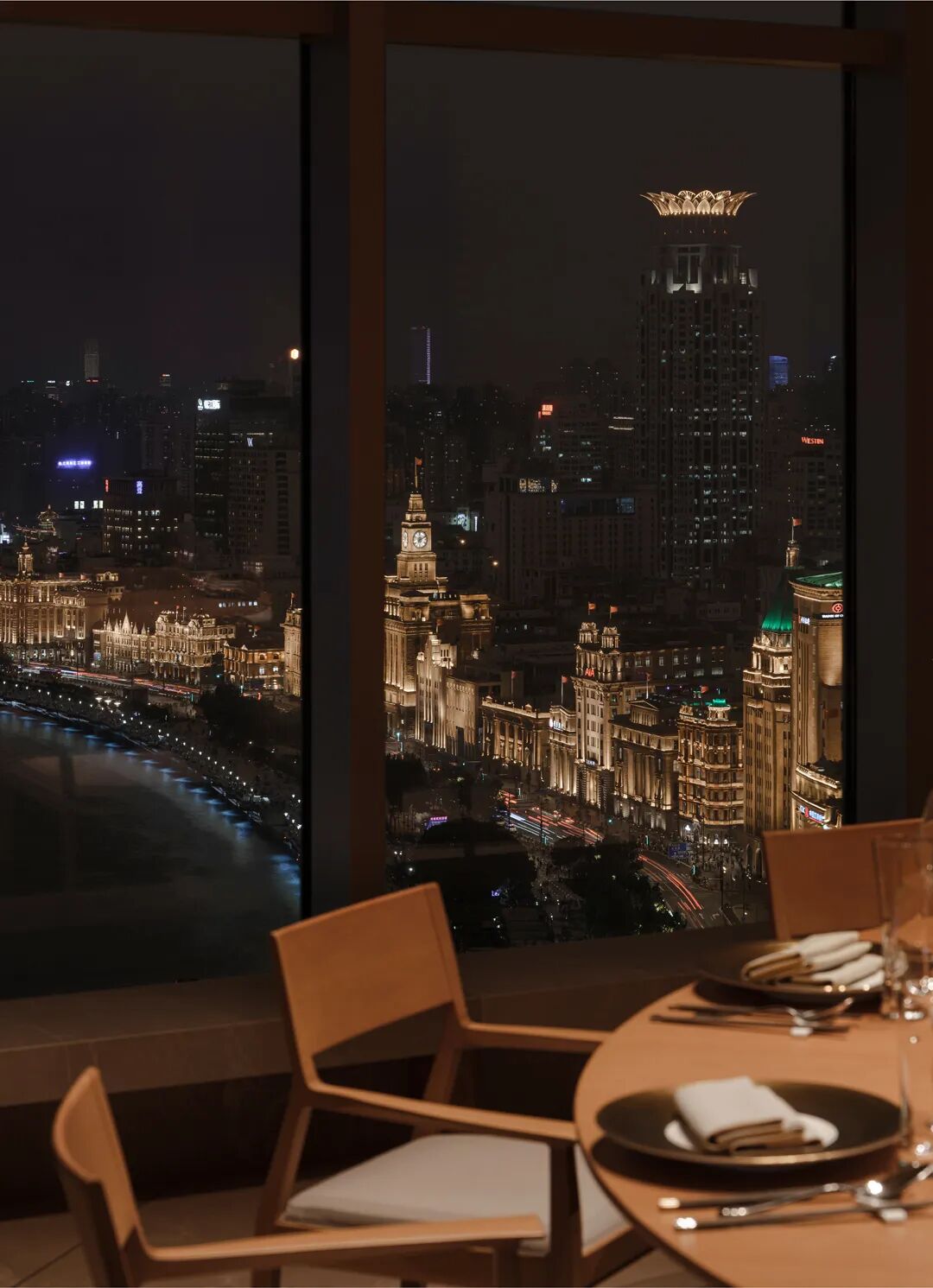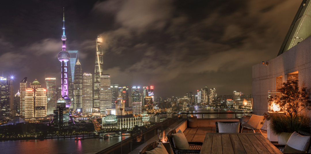窗外映射外滩与陆家嘴的灯光,