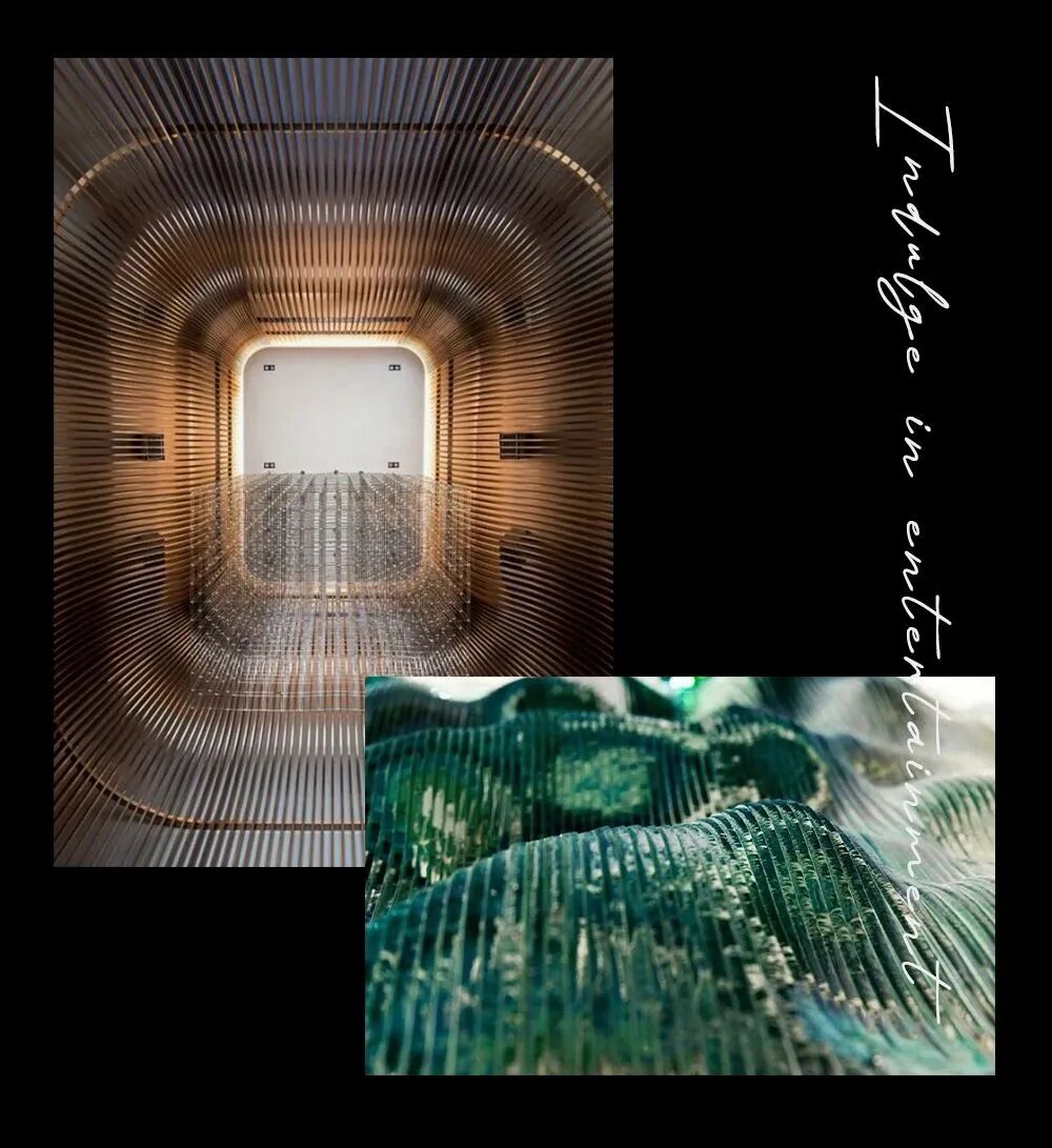 水晶、金属的触感、观感,垂坠悬挂、切割设置为初入场地的领域感。厌倦了千篇一律,更爱端庄高雅的古典格调。