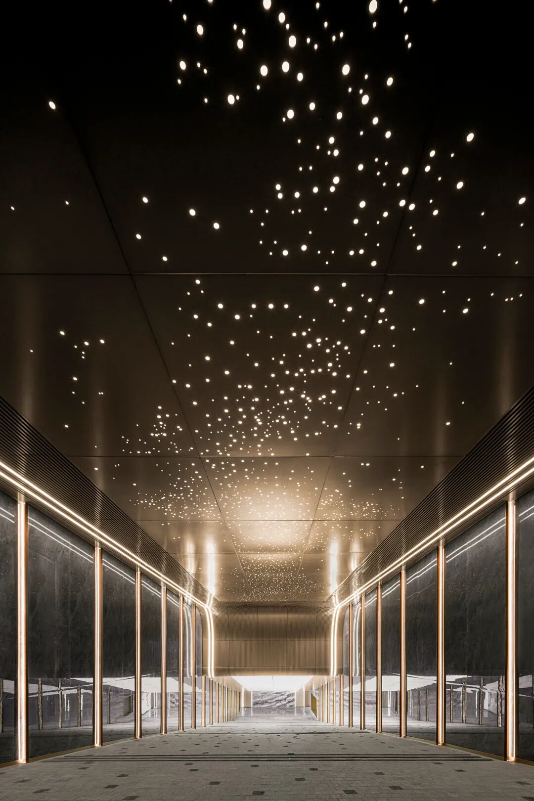 肆意延展的玻璃,在光的渲染中影影绰绰,以之贯穿成墙,瞬时轻盈利落。
