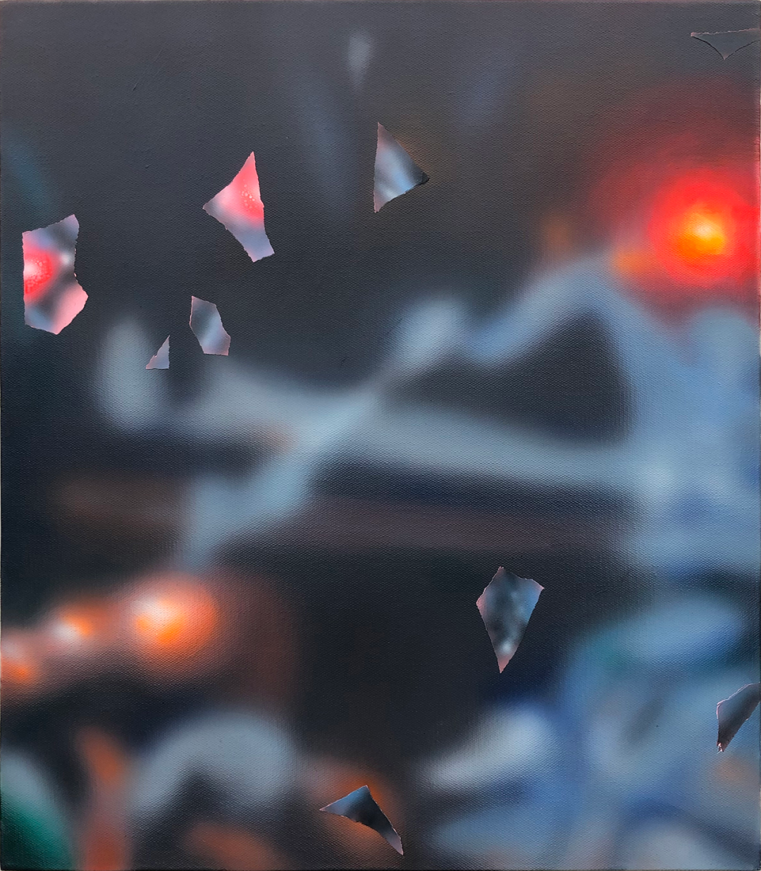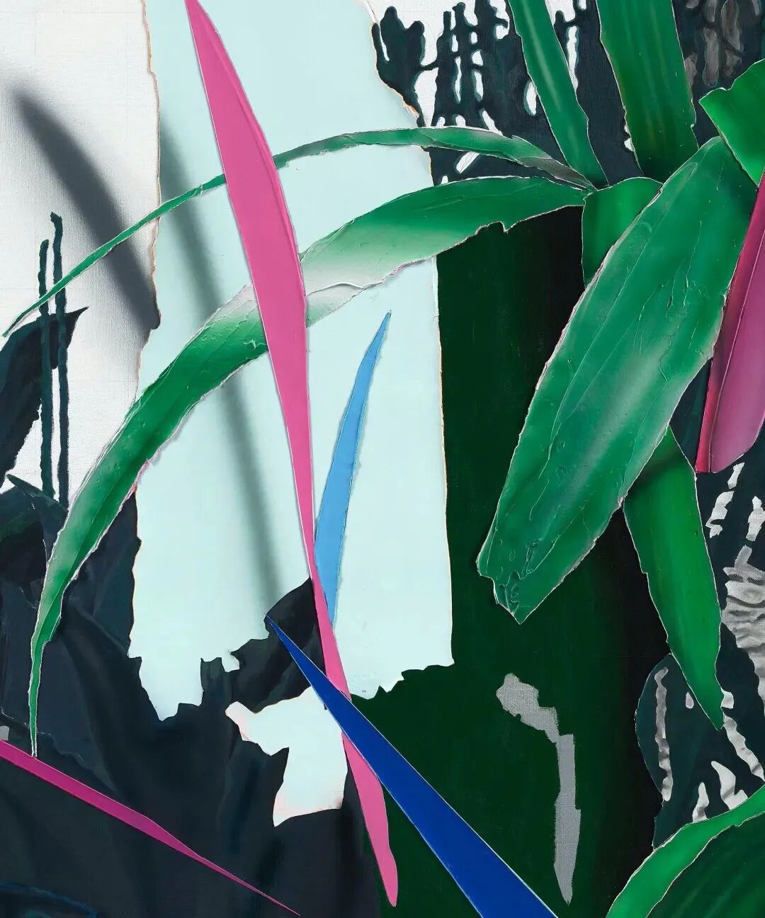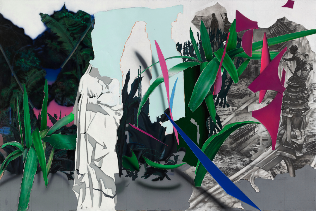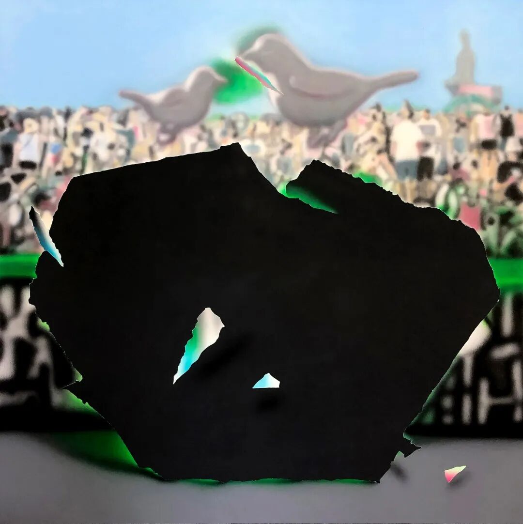 赵宇的作品倚重图像及其内在的语义。一方面,这些图像脱离了原有语境,图像与图像之间出现了一种错位感、断裂感,于是,一种分散的、非线性的叙事开始出现。另一方面,图像的形状成为画面视觉结构的重要因素,因为并置、解构手法的使用,使其打破单一的视觉与空间关系。通过对颜料的堆砌、重叠的图像、布置于画面中的异样形态而展开视觉实践与探索,同时也叙述着他对现实的观察和想象。