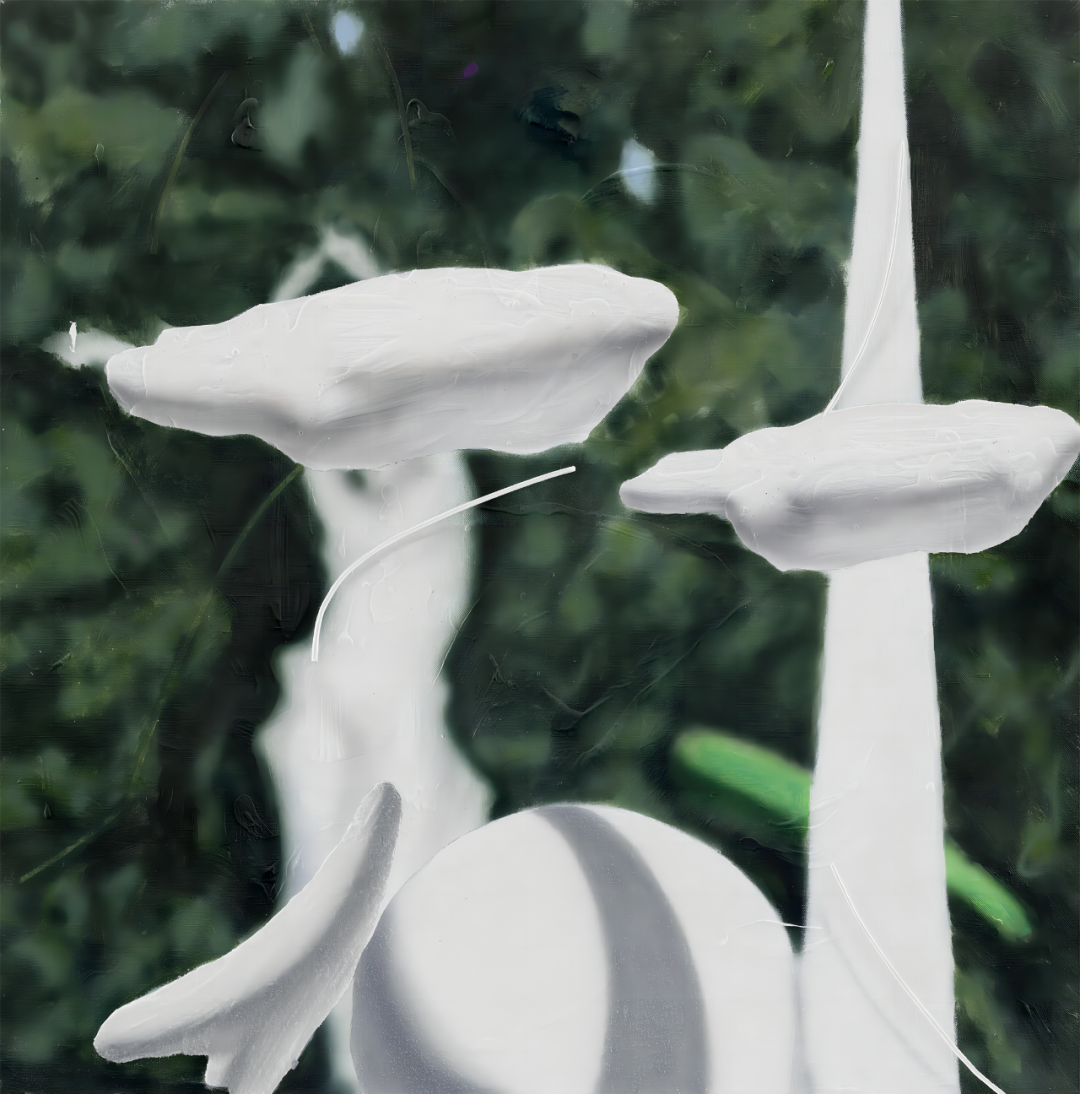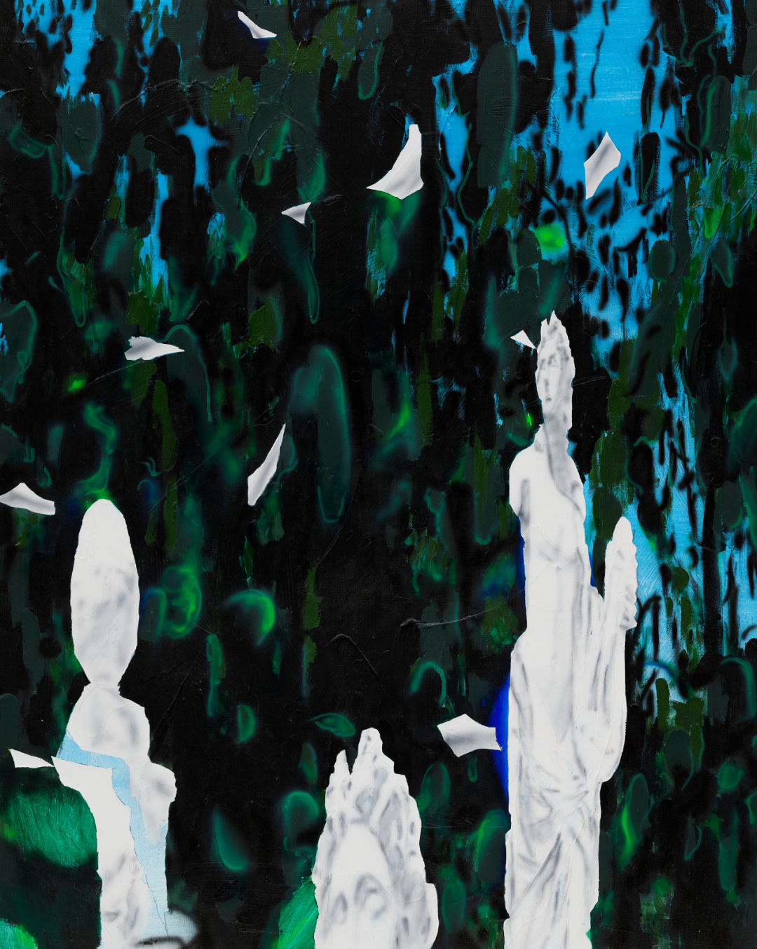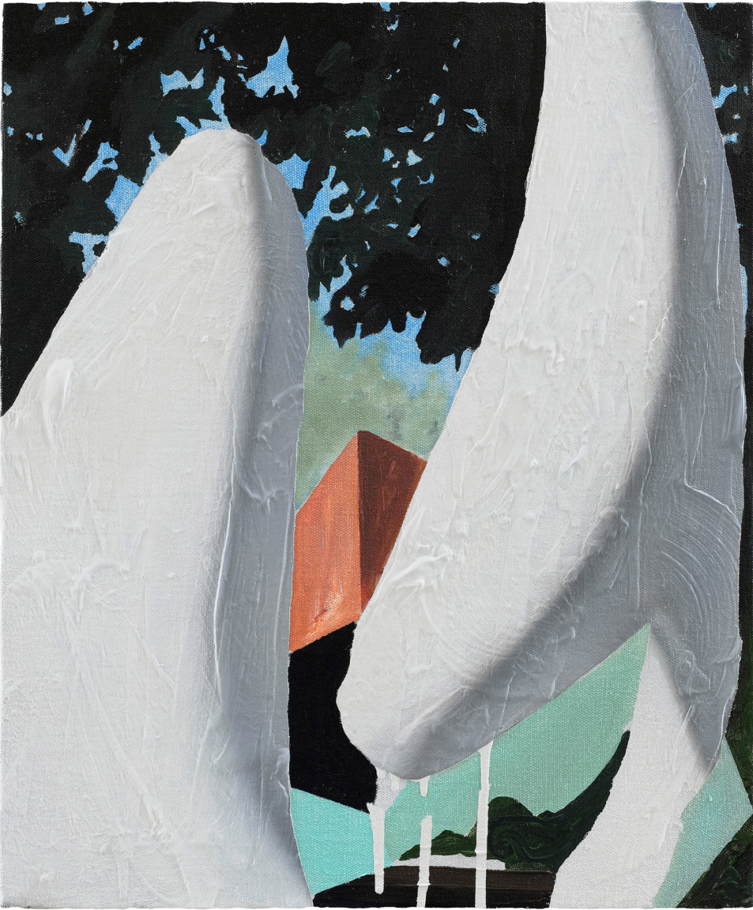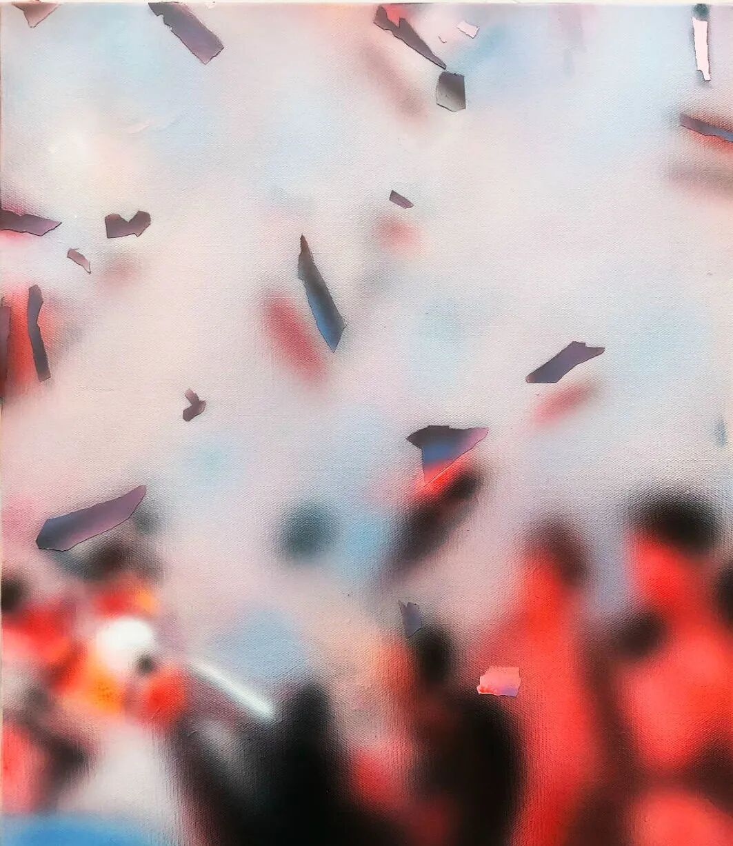 赵宇的作品倚重图像及其内在的语义。一方面,这些图像脱离了原有语境,图像与图像之间出现了一种错位感、断裂感,于是,一种分散的、非线性的叙事开始出现。另一方面,图像的形状成为画面视觉结构的重要因素,因为并置、解构手法的使用,使其打破单一的视觉与空间关系。通过对颜料的堆砌、重叠的图像、布置于画面中的异样形态而展开视觉实践与探索,同时也叙述着他对现实的观察和想象。