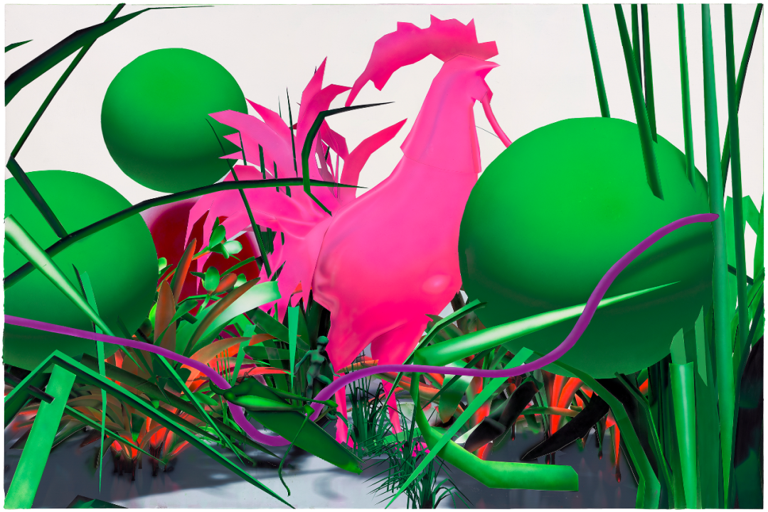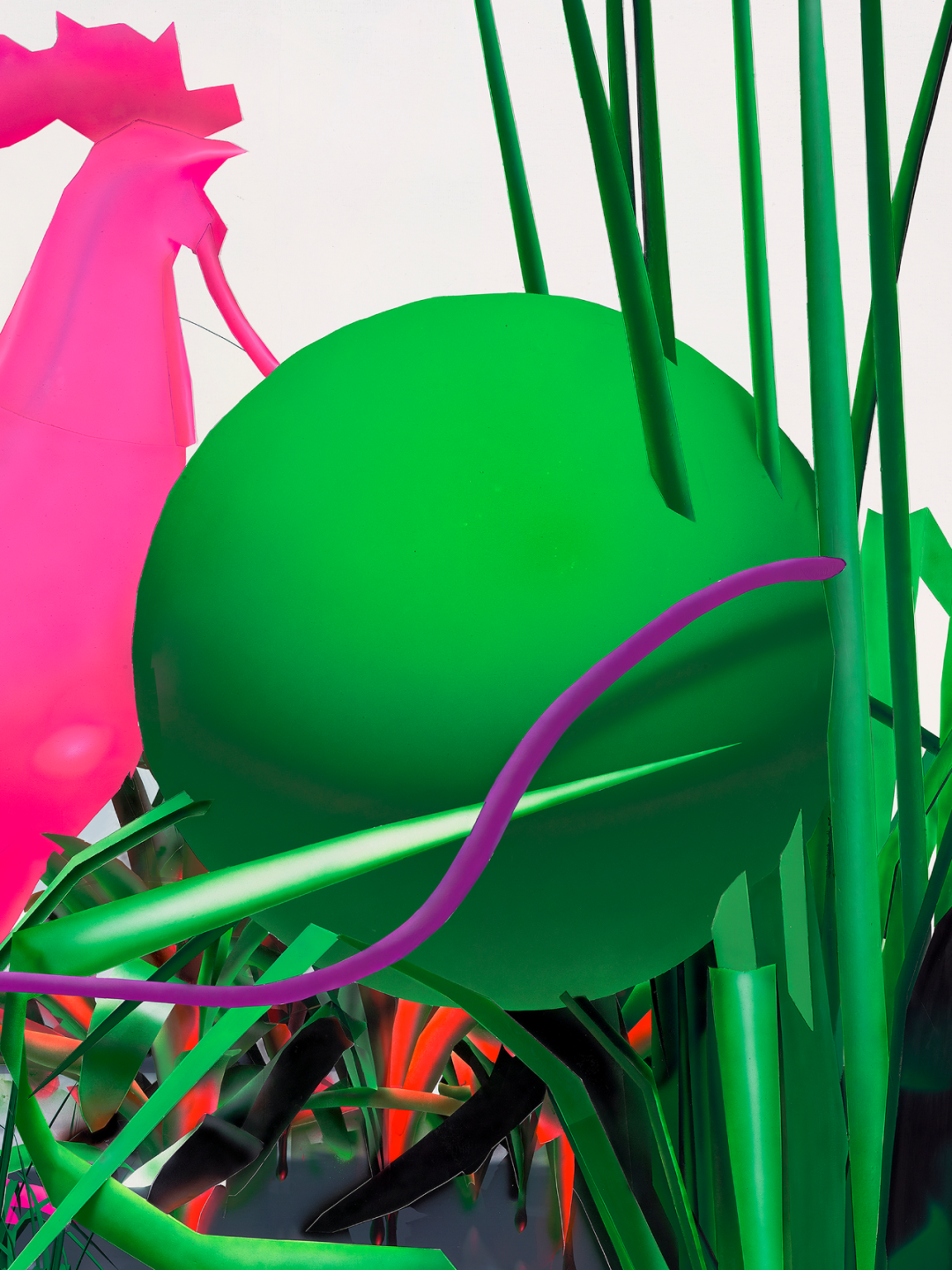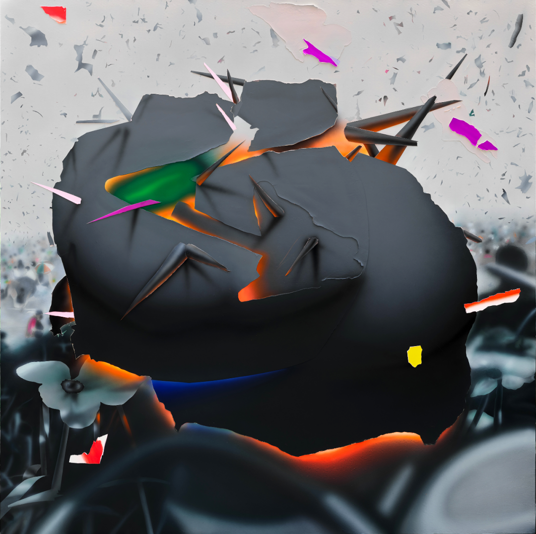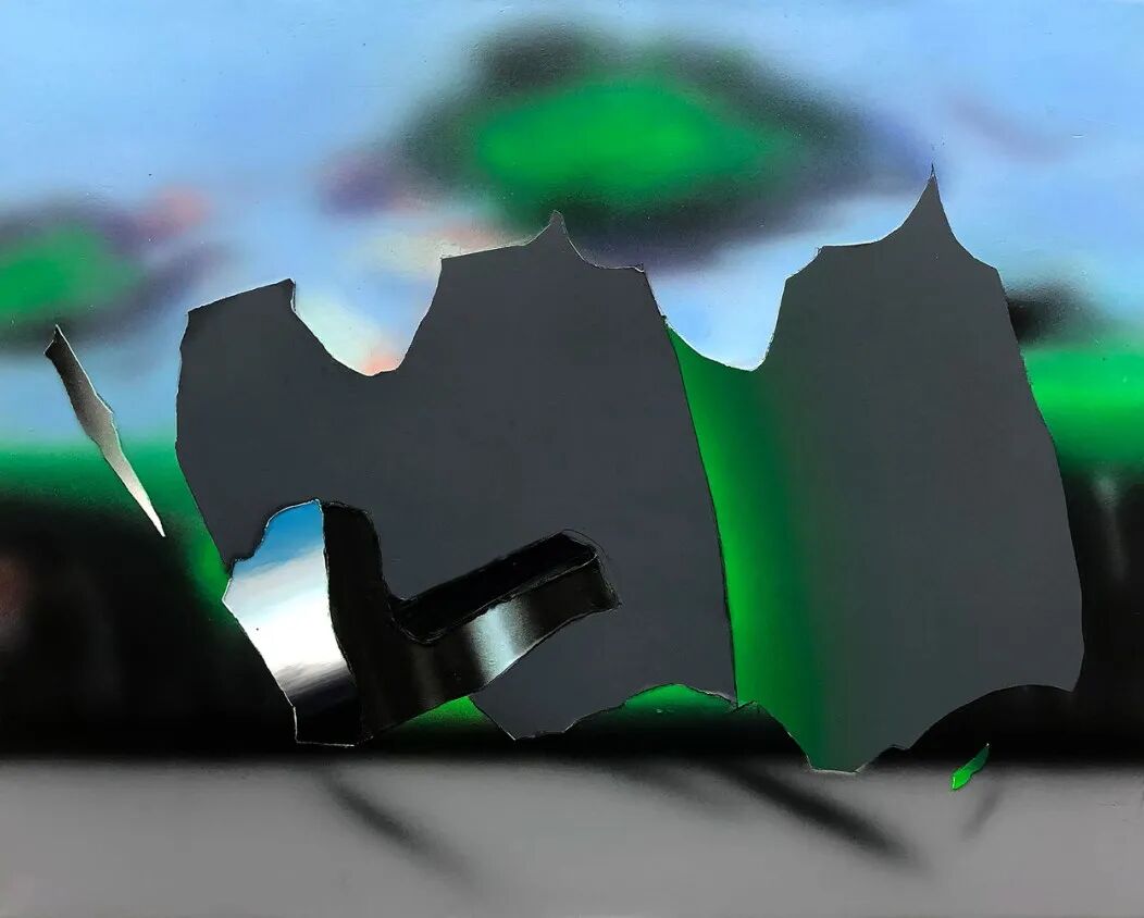 赵宇的作品倚重图像及其内在的语义。一方面,这些图像脱离了原有语境,图像与图像之间出现了一种错位感、断裂感,于是,一种分散的、非线性的叙事开始出现。另一方面,图像的形状成为画面视觉结构的重要因素,因为并置、解构手法的使用,使其打破单一的视觉与空间关系。通过对颜料的堆砌、重叠的图像、布置于画面中的异样形态而展开视觉实践与探索,同时也叙述着他对现实的观察和想象。