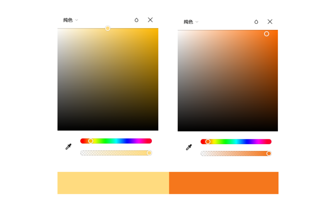 将色板与色块单独拎出来对比,可以明显的看出颜色存在问题,我们通过调整色相、明度、饱和度之后,再去看一下效果是不是会更好呢?