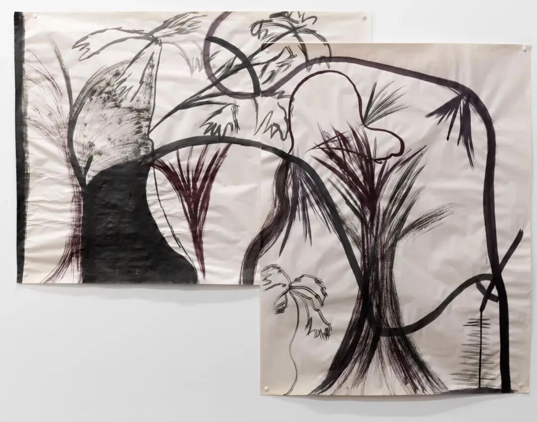 爱丽丝(语言)练习 13, 2021,水墨水彩纸,艺术家画框,76 x 190 cm