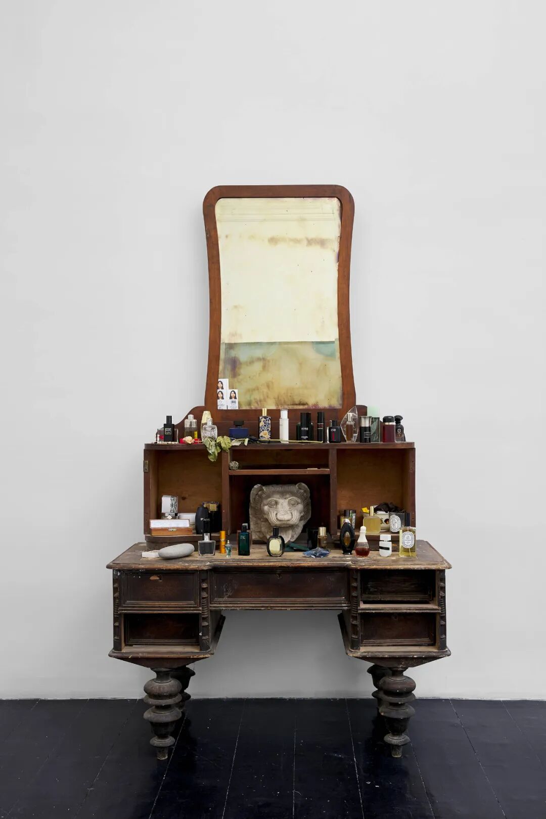 收藏家,2022,木制梳妆台、镜子、石头、玫瑰、香水瓶、个人物品,250 × 140 × 74 cm