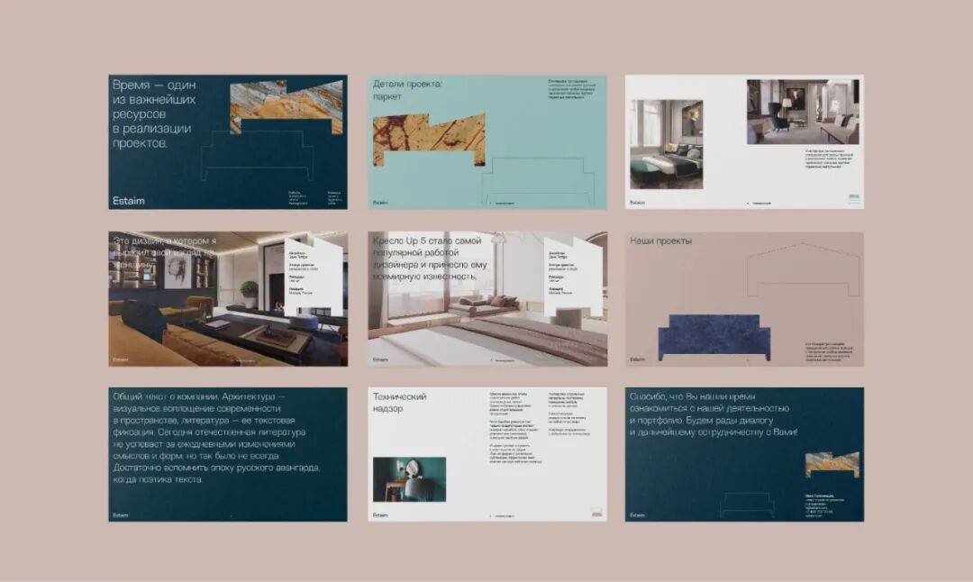 这是一家从事建筑和室内管理公司。标题中的字母组合统一了“美学管理”的概念。