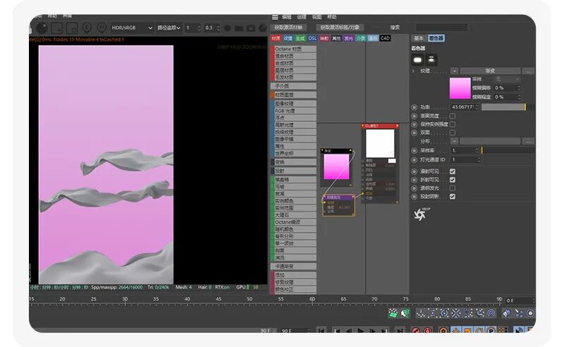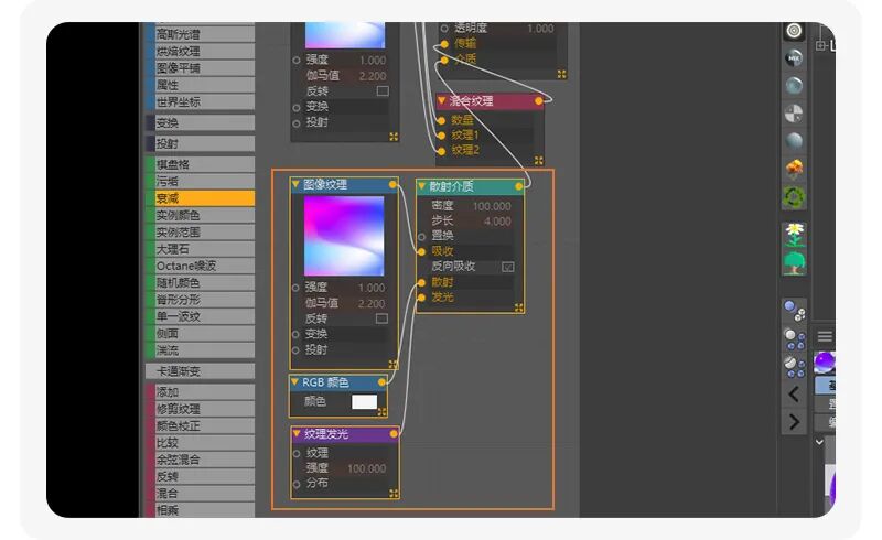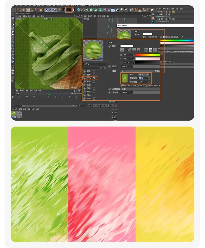 01-添加漫射材质,发光通道给到渐变做背景板的颜色
