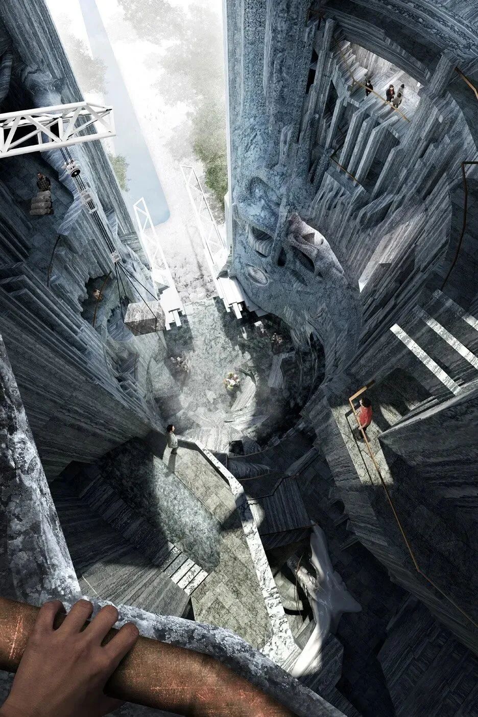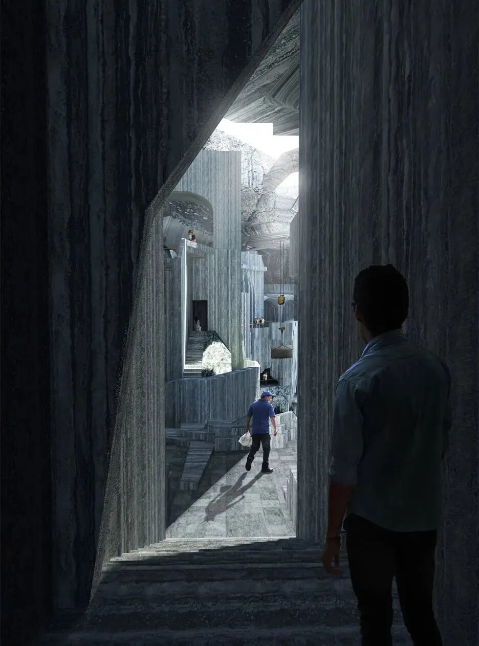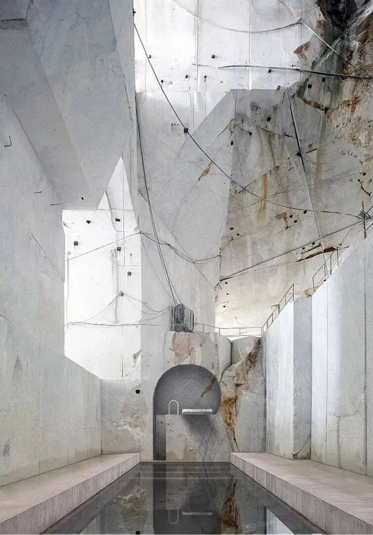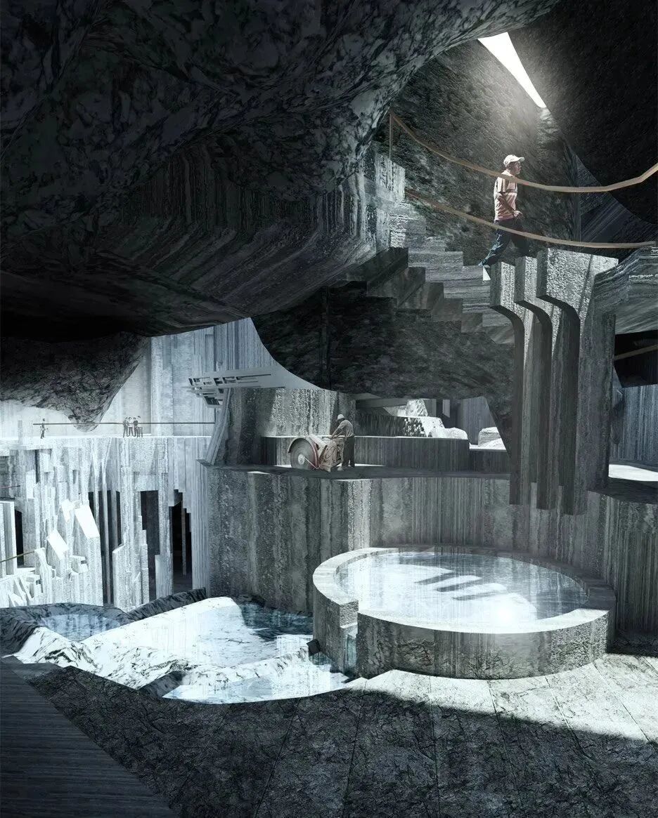 在卡拉拉温泉浴场比赛中,一个名为”流失的风景“的作品,带我们解锁了采石场改造的又一种可能。