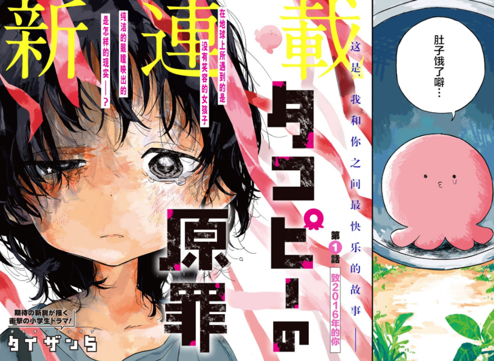 这部作品讲的是原生家庭之痛,故事的主角是一个名为章鱼噼的外星人,它因为某个意外降临到地球上,然后和一个妹子成了朋友,但那个妹子正饱受校园霸凌之苦,原本按照通常的展开,一般是章鱼噼使出各种外挂一般的超能力帮妹子解决烦恼,可在这个故事里,章鱼噼的帮助没半点鸟用,甚至还直接害得妹子上吊而死。