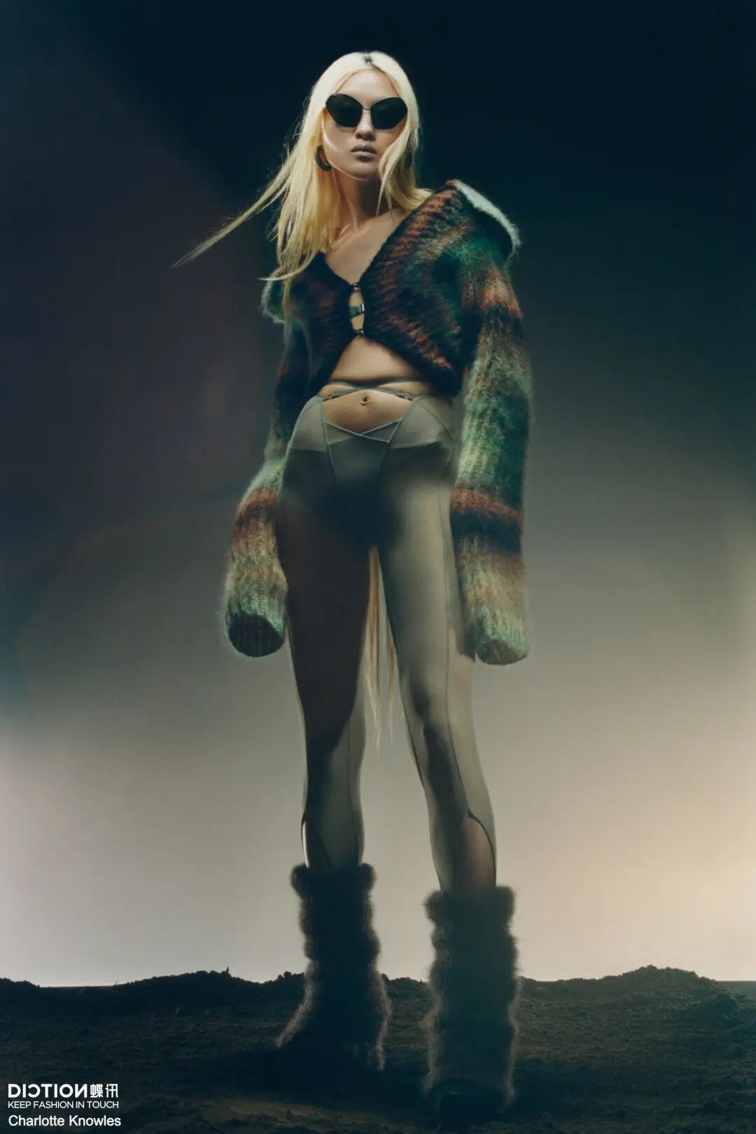 1.自然力量和元宇宙的兴起启发灵感,现实与数字世界之间的界限愈发模糊,针织服装随该趋势呈现出沉浸异世之感。