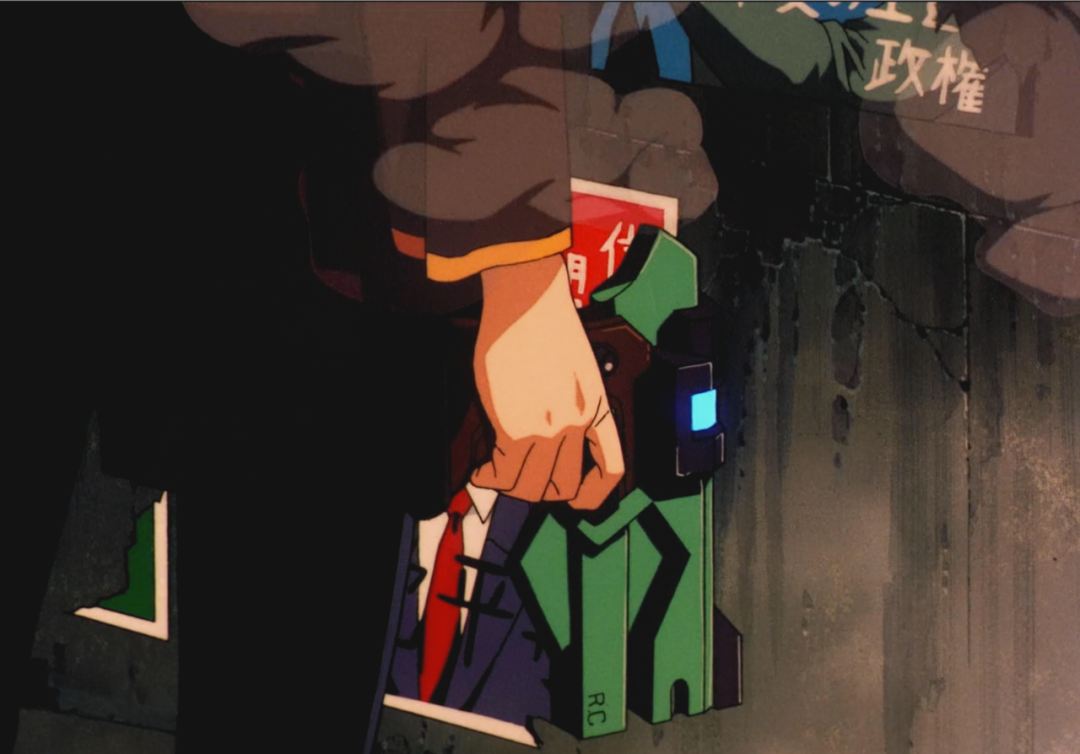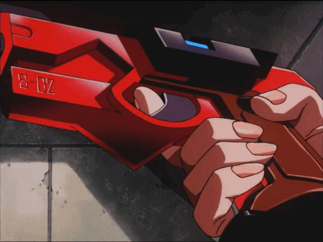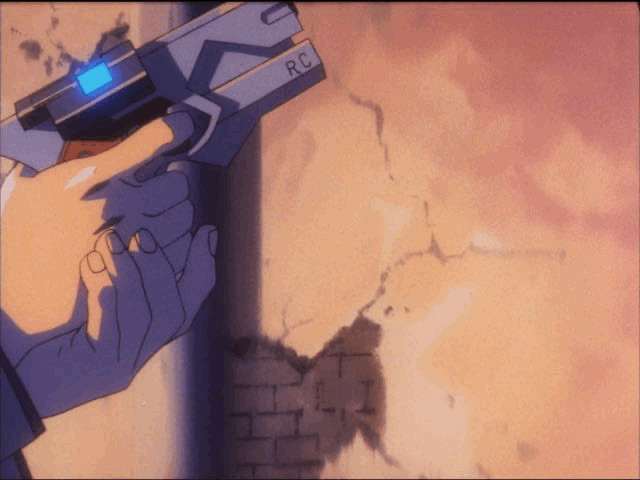 动画里另一个细节,也让音分利是否死亡变得扑朔迷离,动画里杀手们用的枪有两个模式,一般枪上亮黄灯代表打出能在人体内爆炸的子弹,枪上亮蓝灯代表普通子弹。