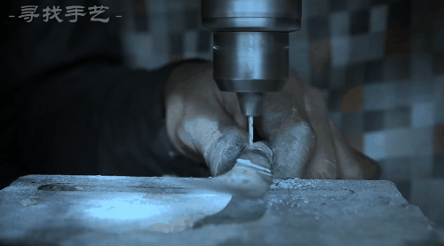 要先打孔留出位置,把贝壳切割成小小的菱形,焊进刀柄,再去细细打磨、抛光…