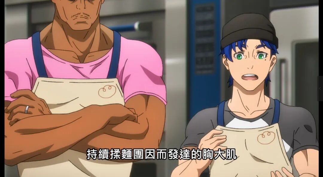 例如,在猛男做面包这集,他问他正在外面旅游的爹,做好这个面包的要诀是什么。这个不靠谱的爹只简单地回了一个词“胸”。