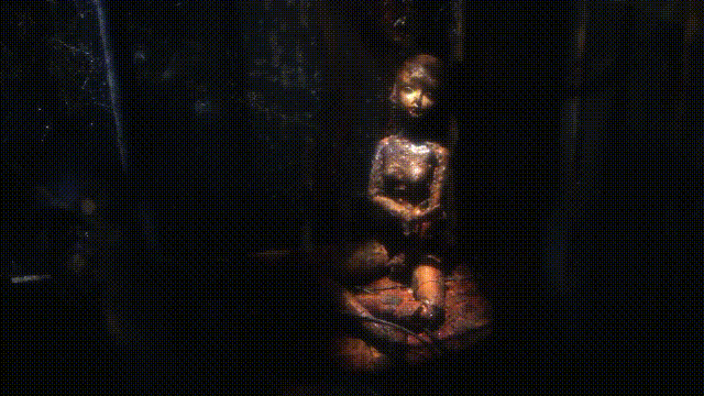 浑身污秽的人偶娃娃被关在铁笼里,空洞的双眼向着士兵抛出魅惑的神情。