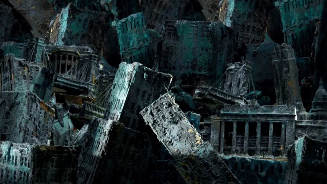 当潜水钟终于着地,士兵从潜水钟里出来,映入眼帘的,是一个战后的废土世界。破碎的建筑废墟七零八落,有毒的化学试剂肆意流淌。