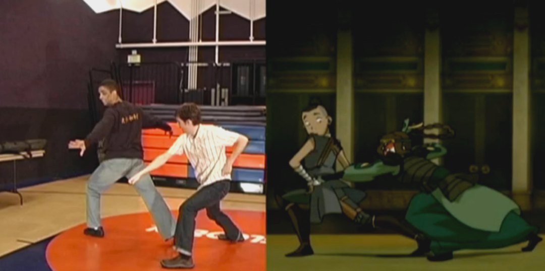 比如水的柔和就符合太极拳的宗旨;火的爆裂、危险的特质就更适合用简洁利落的北少林拳展示。而动画里一个盲眼的主要角色托芙,则单独给她设计了螳螂拳的动作。
