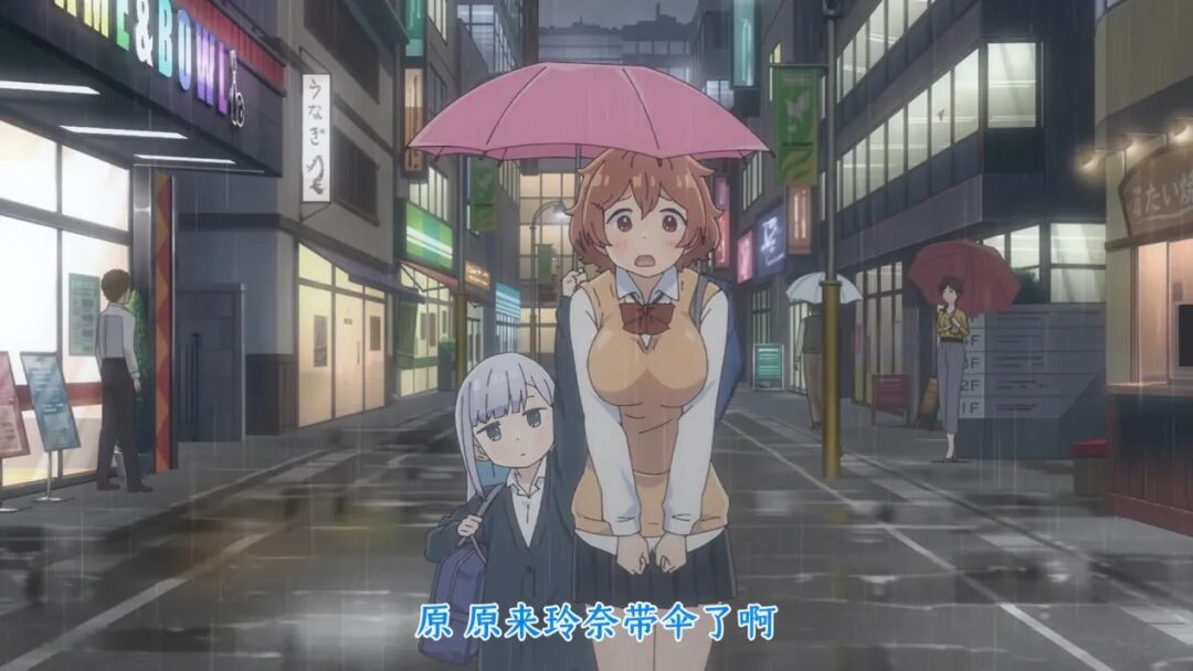 例如,在和身材高大的闺蜜一起回家的路上,雨正在下,个子矮矮的阿波连努力地把手伸得老高,在两人的头顶撑起一把伞。
