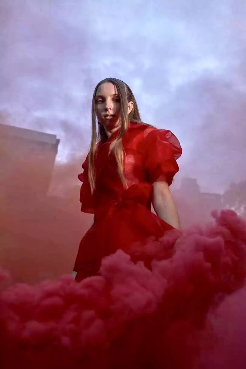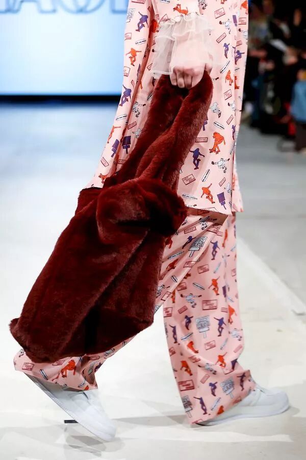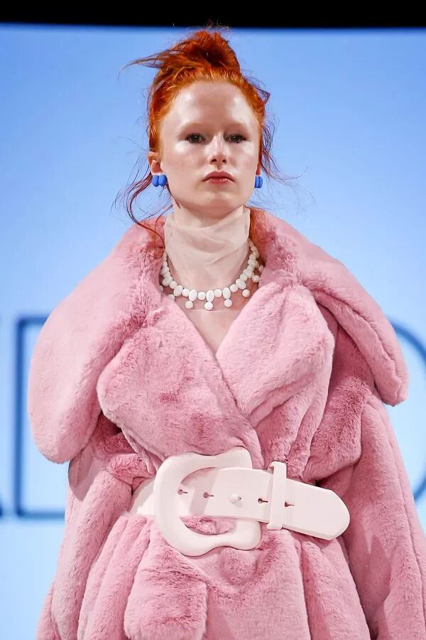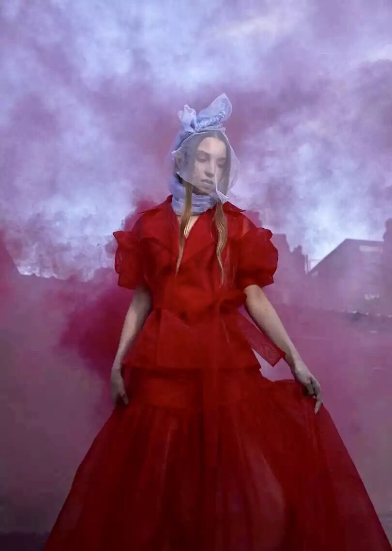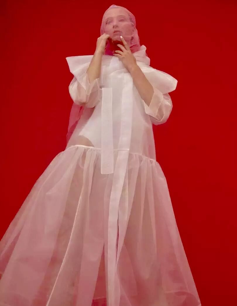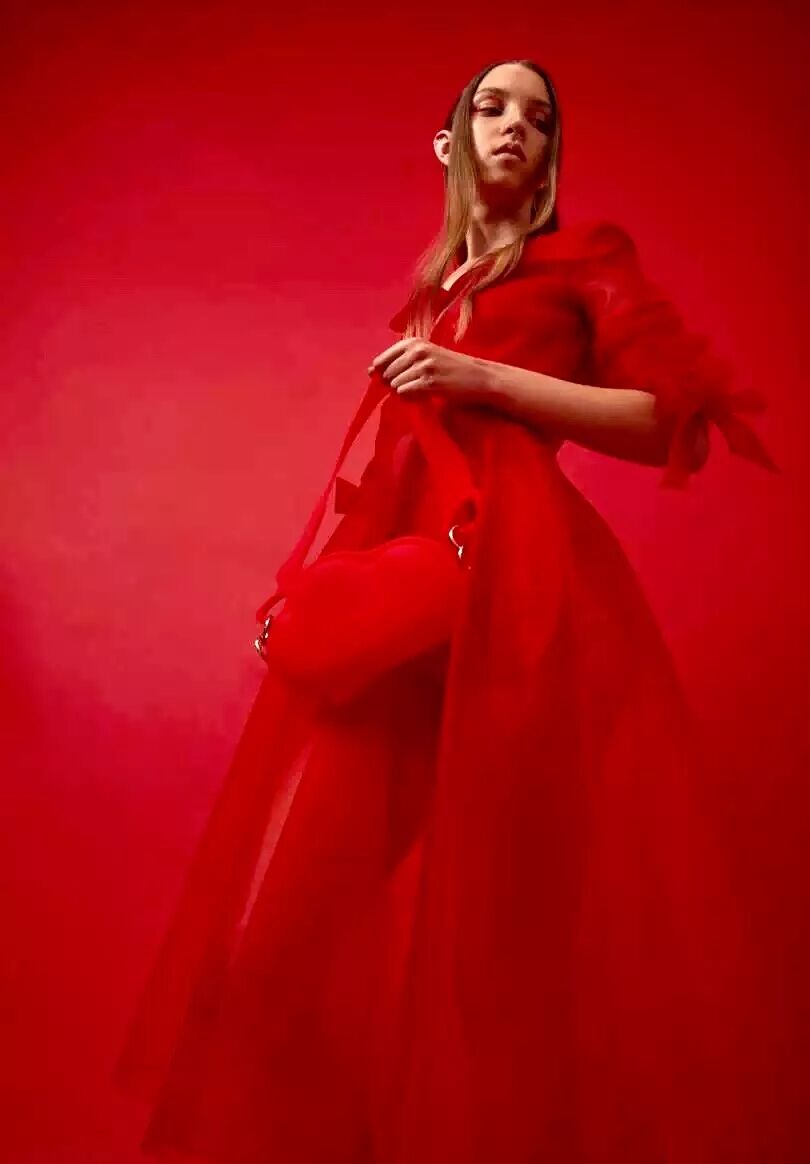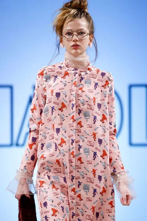 2018 早春系列以“ 自我寻找 / 实现 ”为主题,细腻的褶皱配合简洁的大廓形,不规则结构配合甜美的大号娃娃领,超现代主义的“二次元”印花图案,形成一种玩味的 冲撞。 “一半可爱,一半强势”。两面都美,都欢喜。