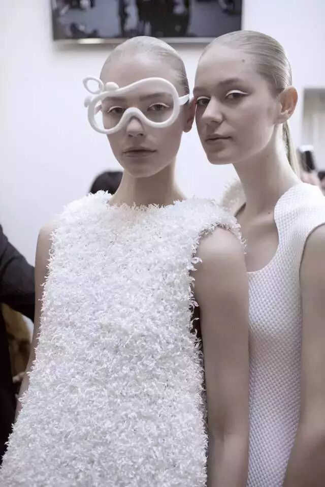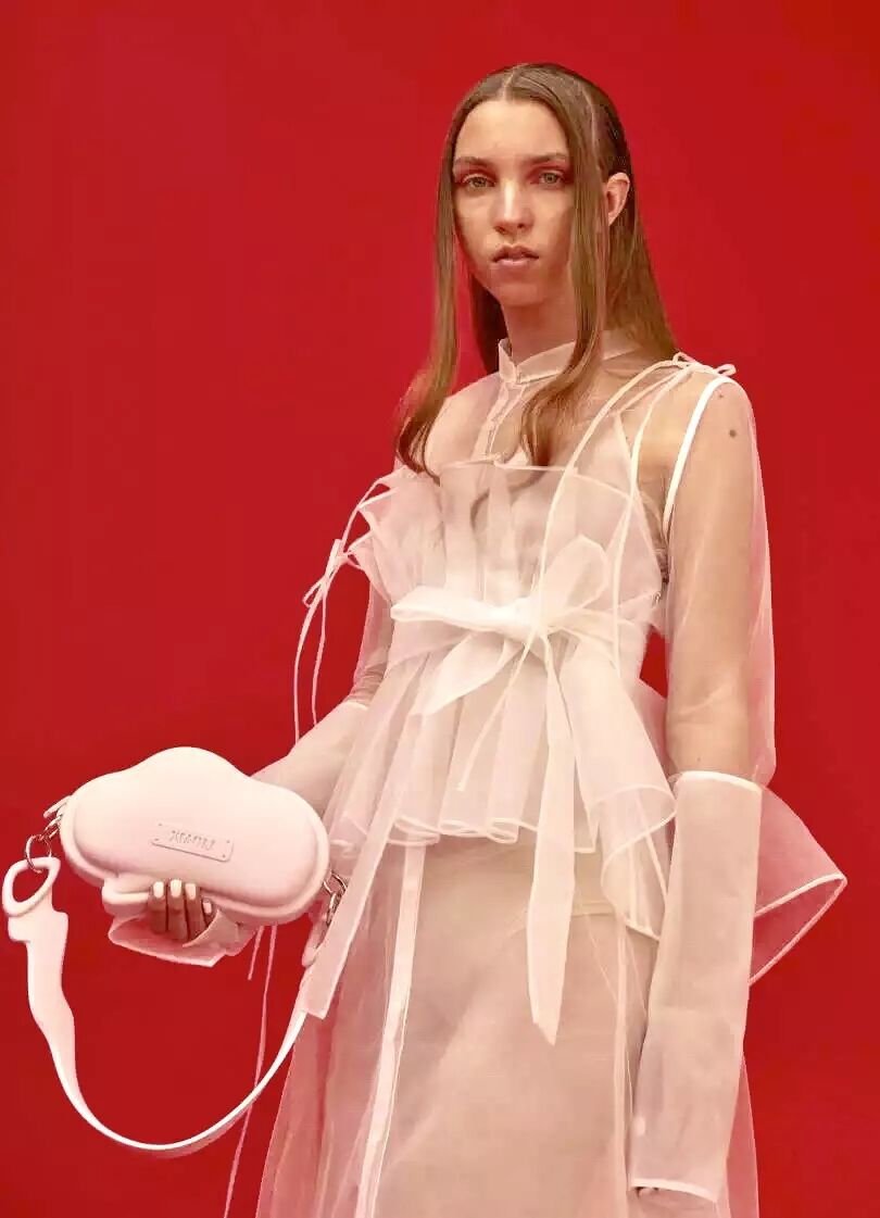 新颖的针织,特别的材质,把服装之外的材质巧妙的运用到服装里,同时用这些特别的材质制造出建筑感的造型,硅胶是每一季都会继续研发的元素,但是每一季用的方式和侧重比例不同,例如2018的硅胶配饰,真是Skr可爱了!