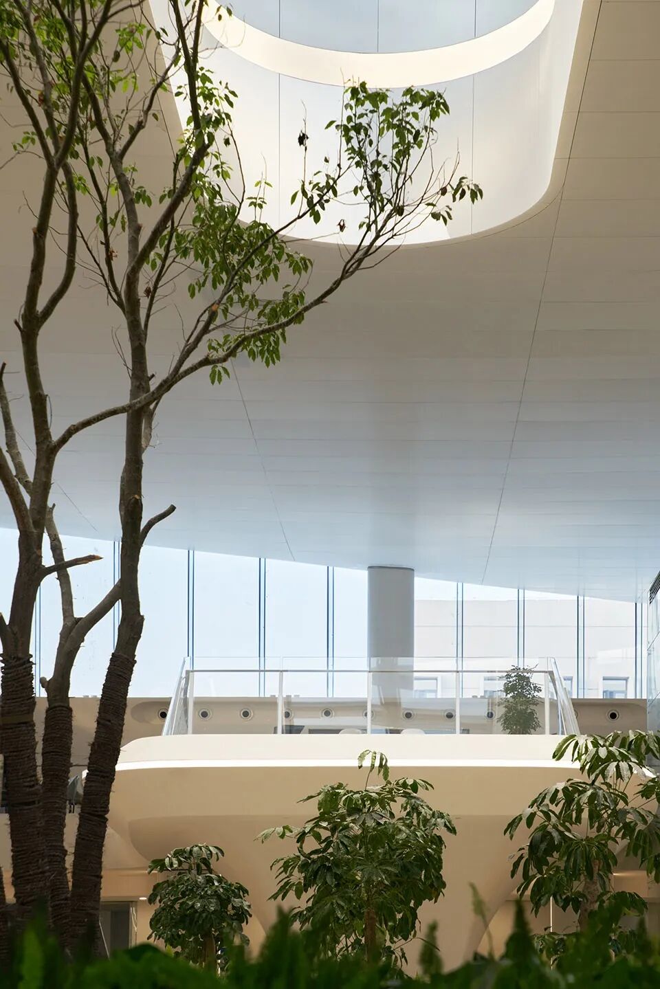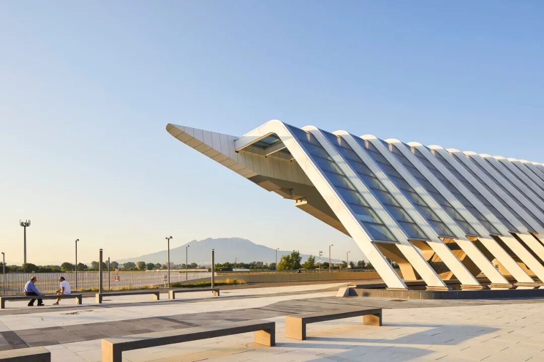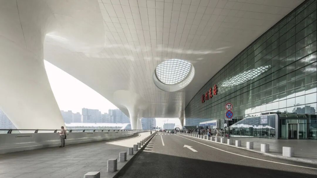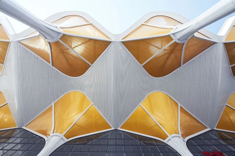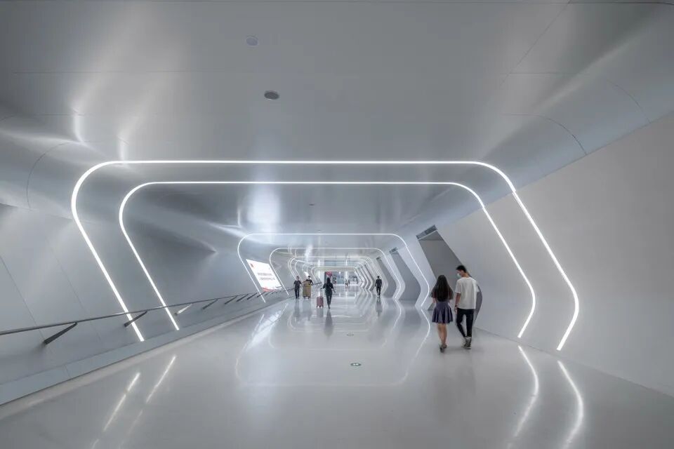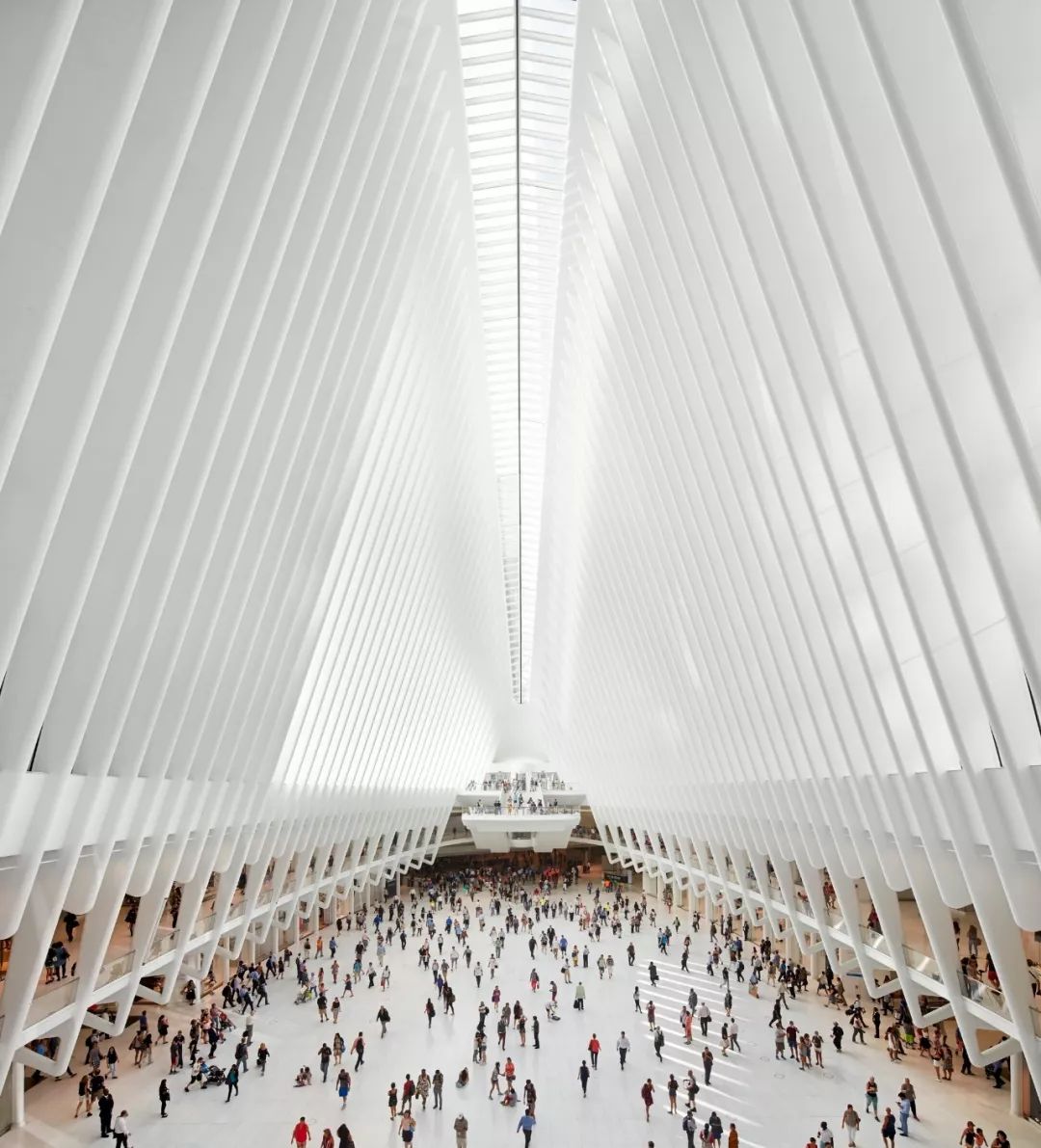 伯明翰新街道车站以一种动态扭曲的几何形态。分支的波浪状柔和形态装点了城市,传递出了交通中心的特征,其中可以感受到不同的交通,就像运河、道路之间的互相叠加一样。