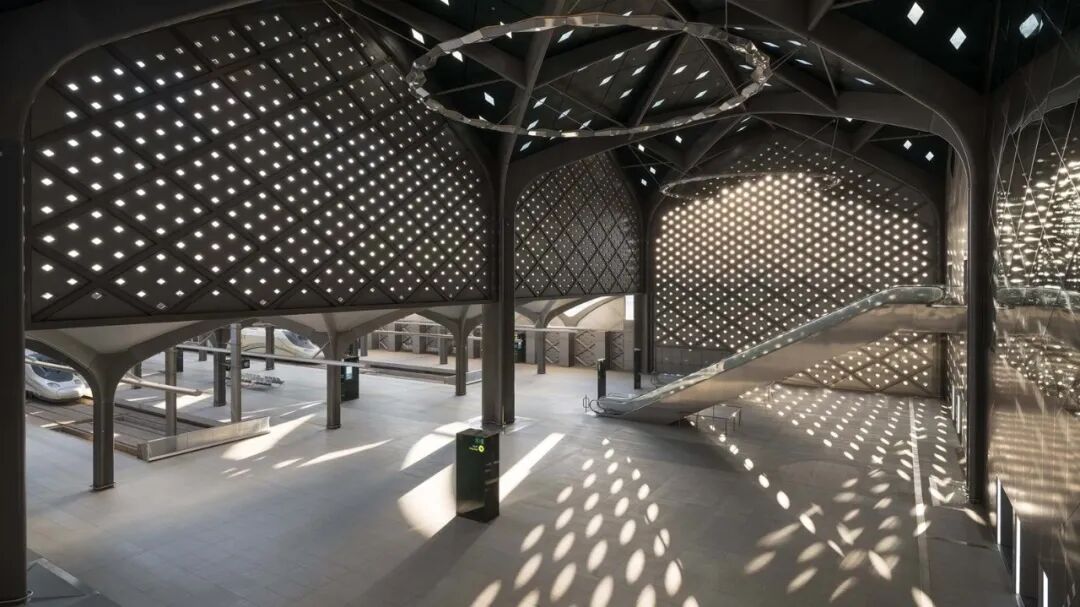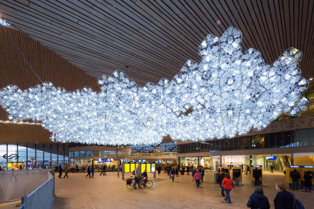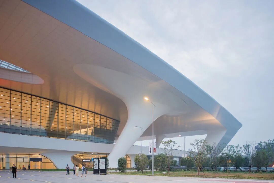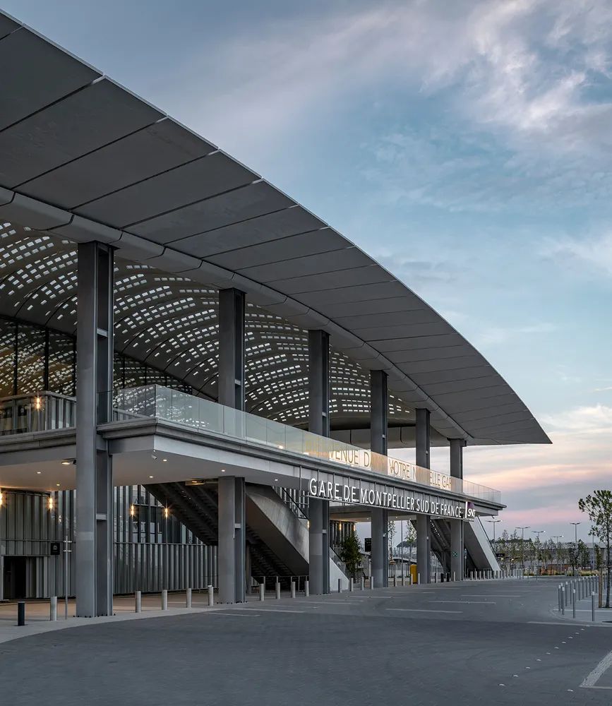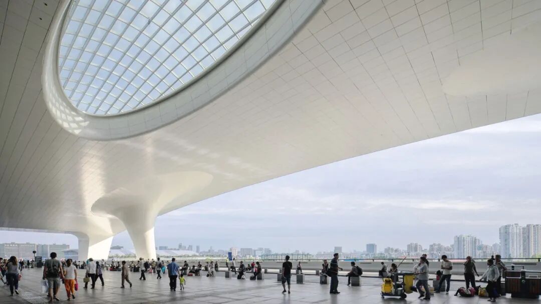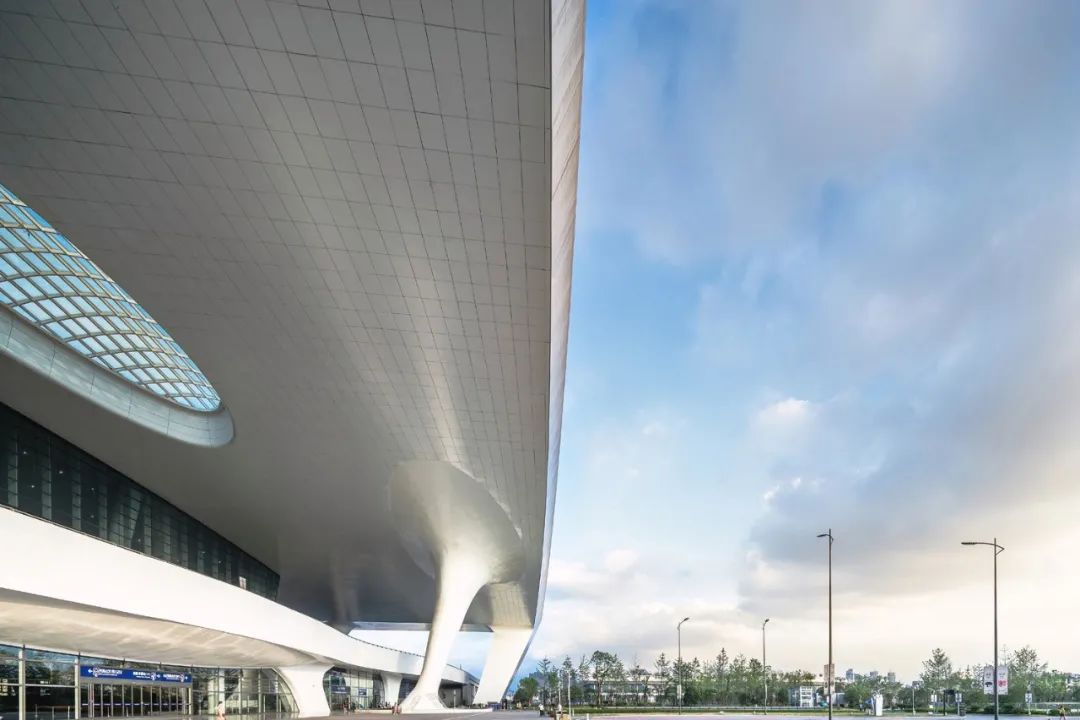 伯明翰新街道车站以一种动态扭曲的几何形态。分支的波浪状柔和形态装点了城市,传递出了交通中心的特征,其中可以感受到不同的交通,就像运河、道路之间的互相叠加一样。