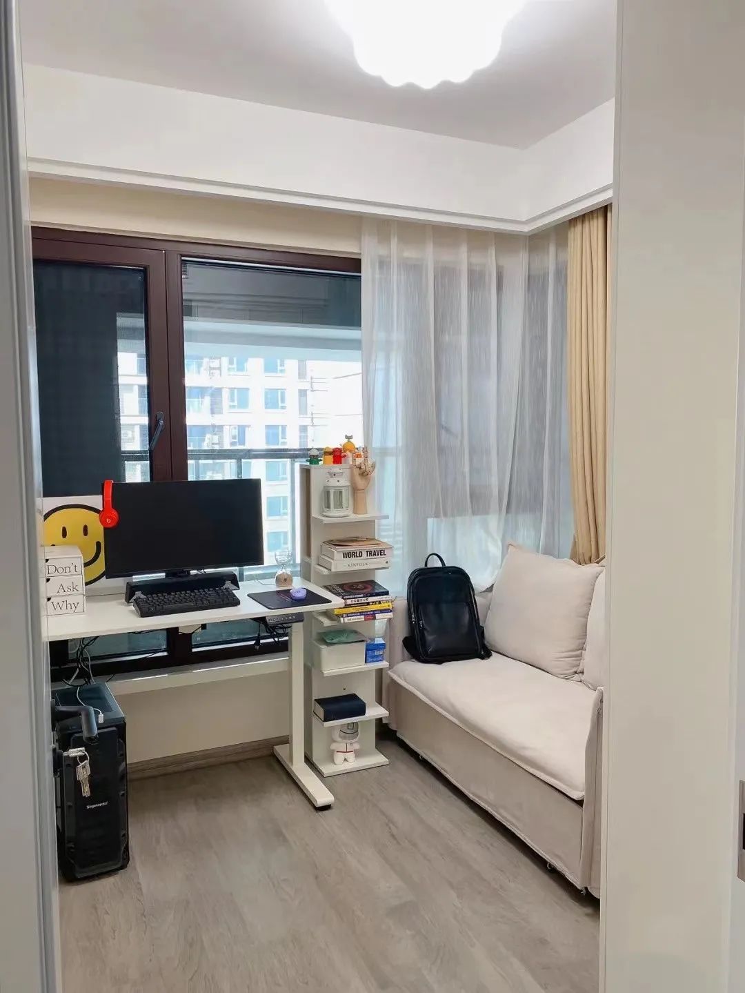 这间是小书房,只有6平米,里面除了摆放基本的书桌椅外,还安装了一张沙发床,既节省空间,学习累了也可以休息,平时家里有客人,还可以作为客房使用,将小空间得到最大化利用。