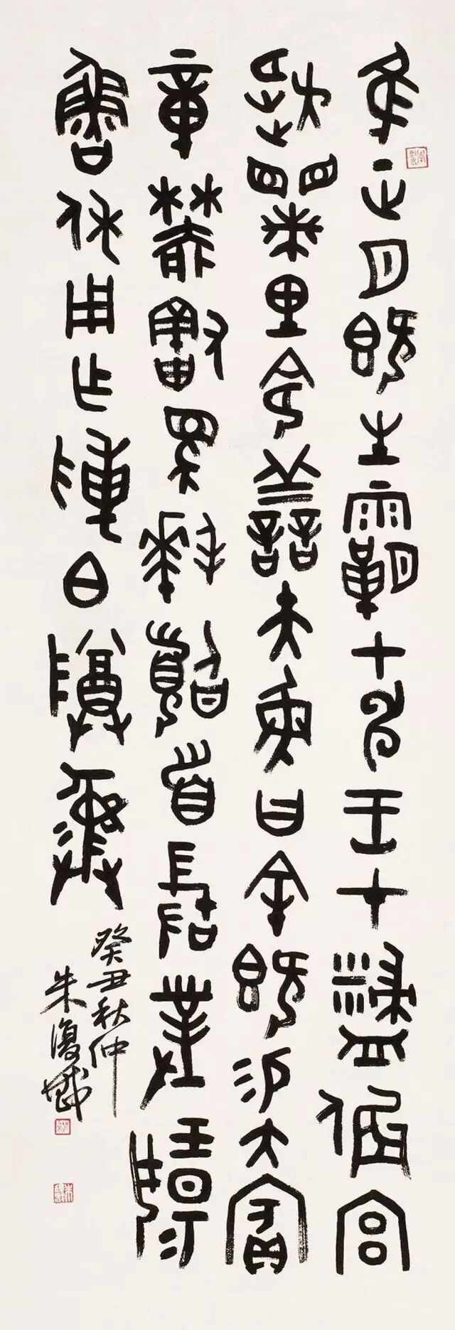 朱复戡,浙江鄞县梅墟人五岁时即在青甑上练习毛笔字,七岁可写一尺见方的石鼓文,引起了吴昌硕的注意。吴亲切地称朱复戡为“小畏友”,朱则称吴“吴昌老”。吴昌硕每每出席各种高雅重要的活动,都要带上朱复戡,以朋友之名形影相随。这样的搭档被称为“一老一少”,成为大上海文化界的一大奇观。