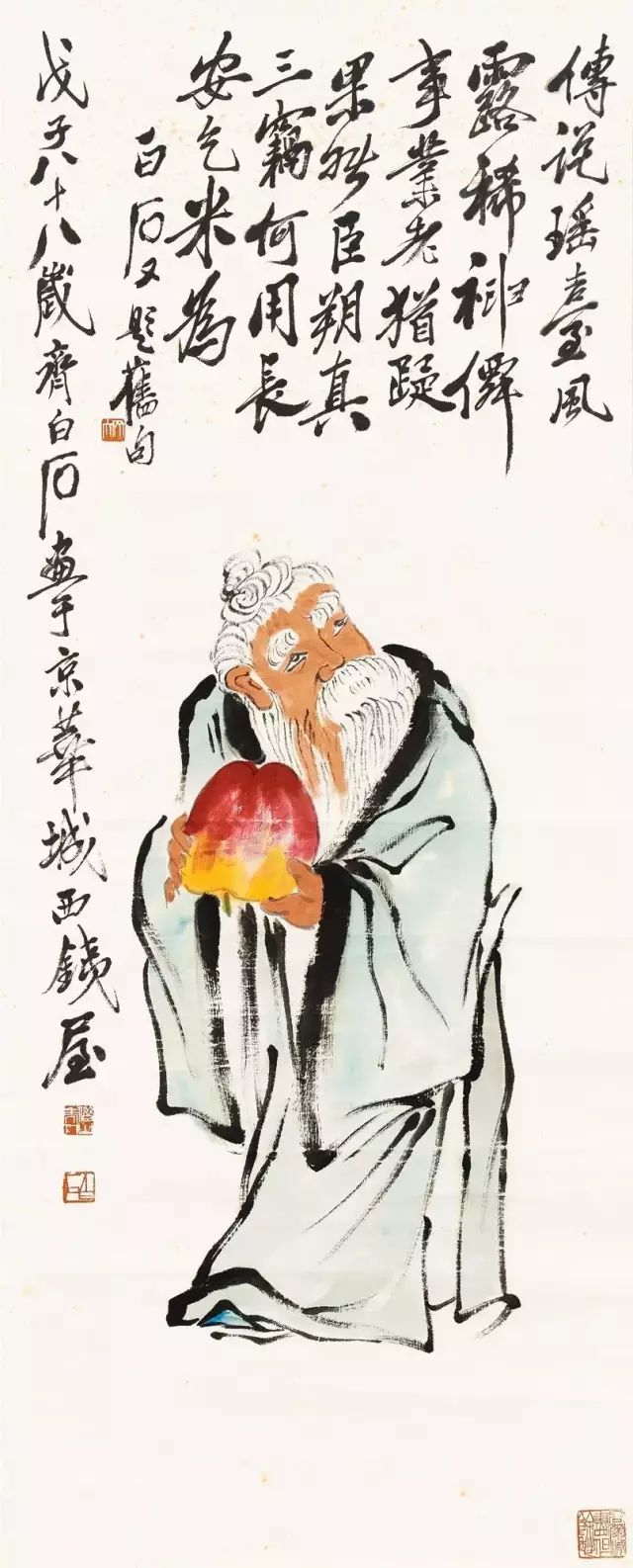 朱屺瞻,江苏太仓浏河新镇人,是我国著名的寿星画家,画坛的一代宗师。1918年始师从吴昌硕。常与同门的潘天寿、吴茀之研讨艺事。