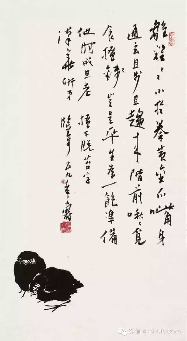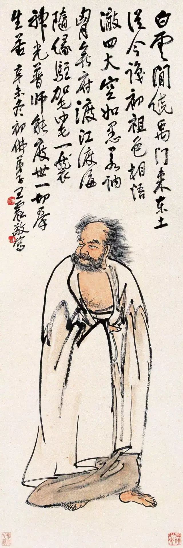1923年, 27岁的潘天寿,任教于上海美专,后经好友诸闻韵介绍,认识了近80岁高龄的吴昌硕,深得其器重。潘天寿常去拜望吴昌硕,耳濡目染,画艺大进。吴昌硕曾对其入室弟子说:“阿寿学我最像,跳开去又离开我最远。大器也。”