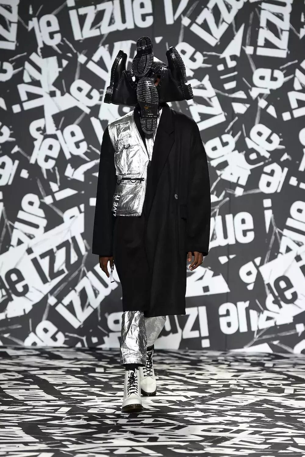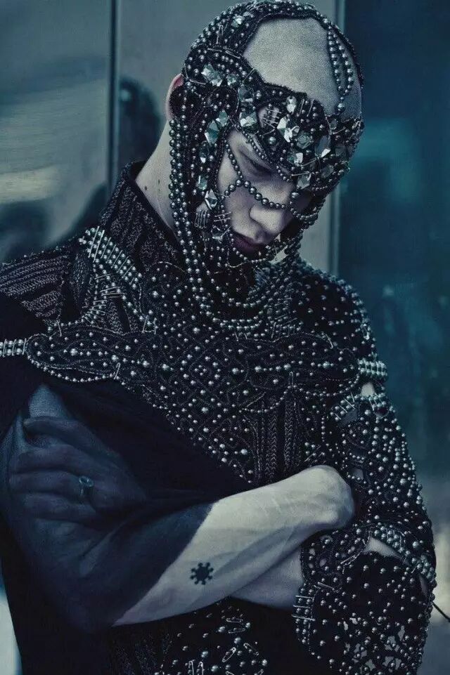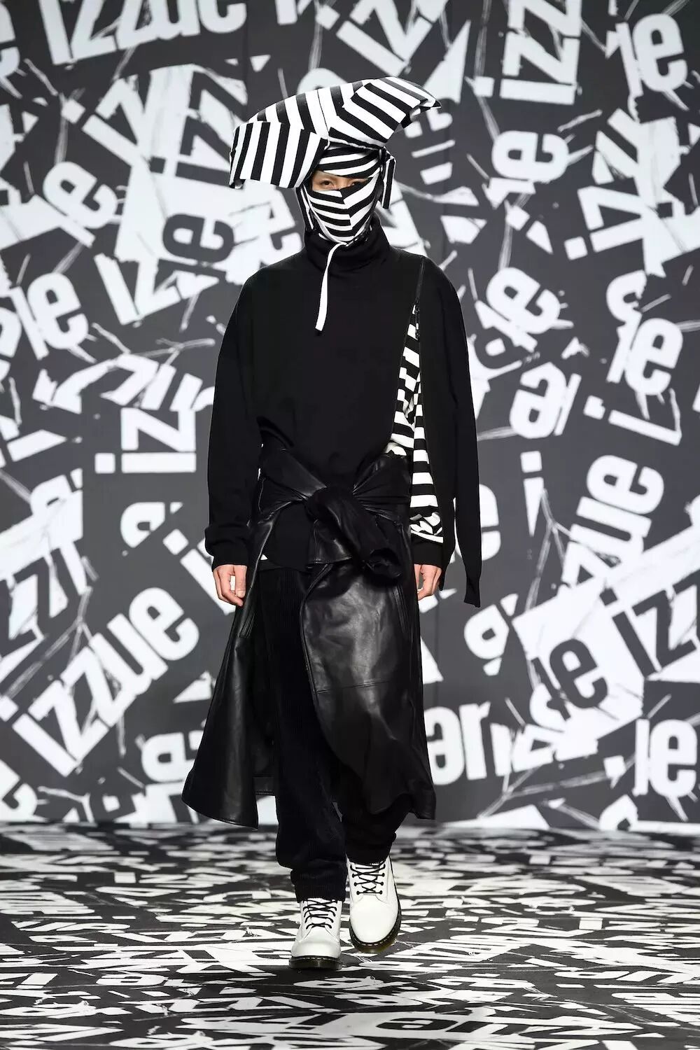 擅长在脸上做文章的Aganovich,很喜欢做“身体畸形”的反时尚戏剧化美学,Aganovich在怪诞天马行空的同时总是充满着思考,荒诞怪异的装扮下,每位模特的脸被面纱挡面,令人毛骨悚然。