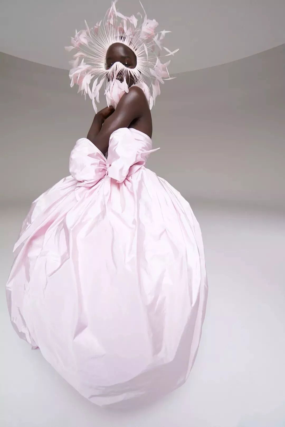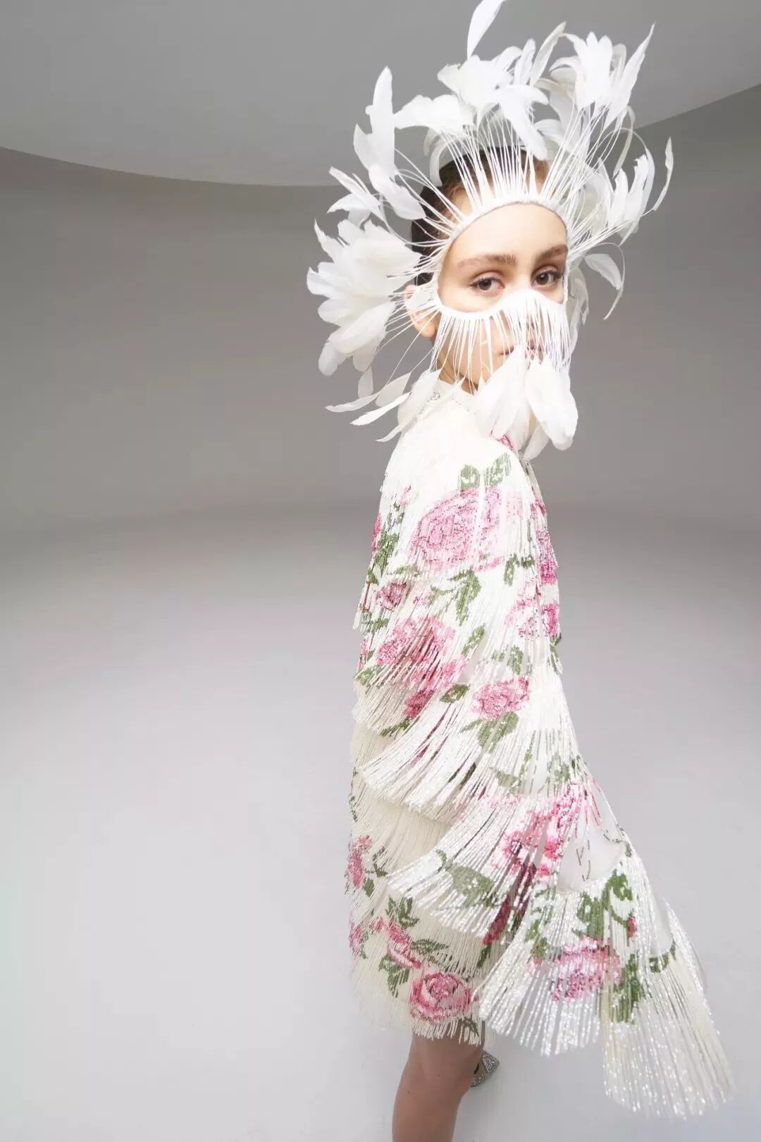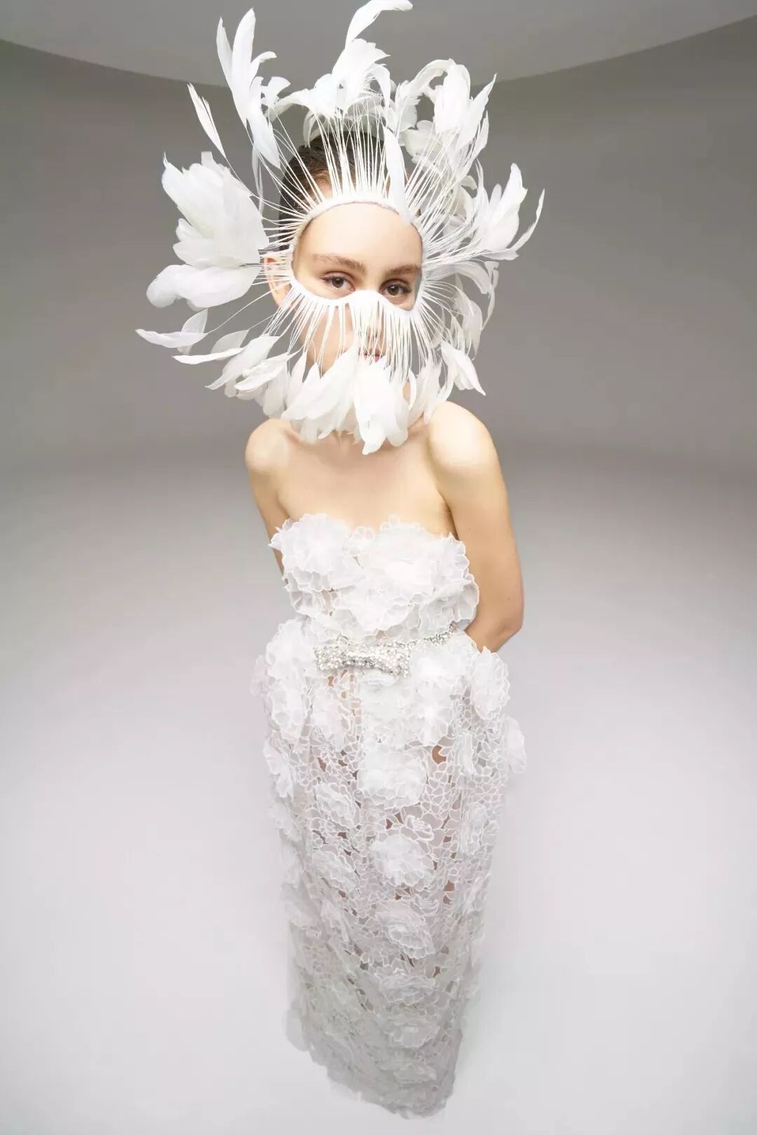 Giambattista Valli 2020年的春季高定系列,以超现实主义鱼眼大片形式呈现,羽毛面具、曳地长裙、多层次荷叶边、蓬松裙摆,华丽的艺术品很适合假面派对。
