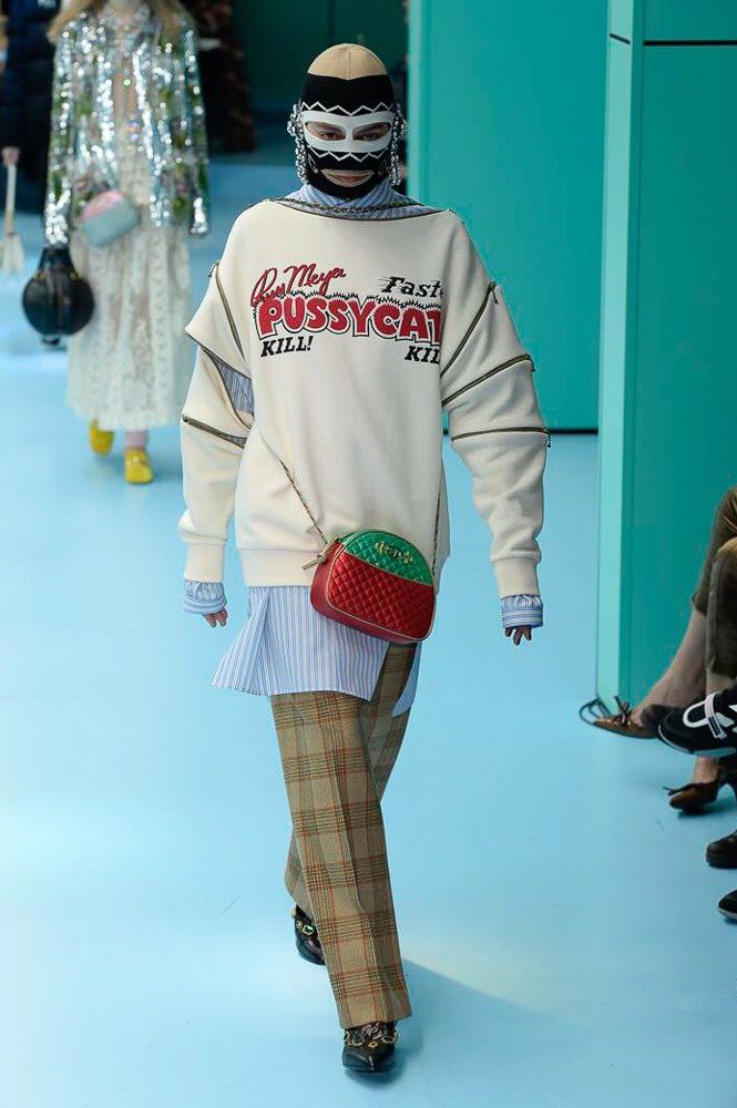 2019早春大秀,Gucci创意总监Alessandro Michele米开理,象征着“葬礼”的黑色面纱,也是秀场中随处可见的元素。