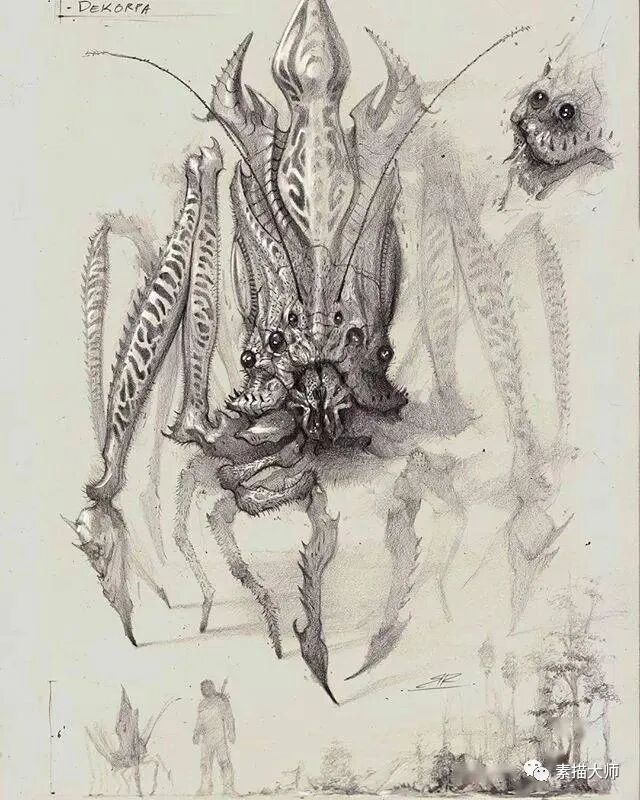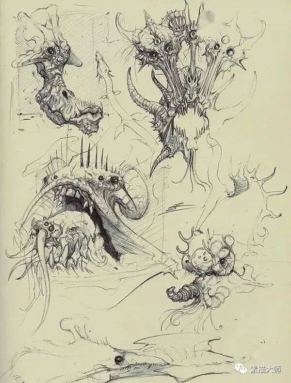 美国概念艺术家Bobby Rebholz。他曾经参加SYFY电视真人秀节目《FACE OFF特效化妆师大对决》并参与制作过《地下城守护者》的精神继承者《超越世界战争(War for the Overworld)》。他非常擅长在纸上表现他所想象的生物和时空,在这线条和阴影中他的作品更显随性自由。