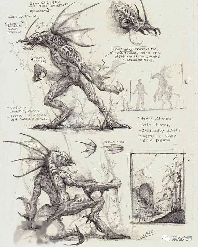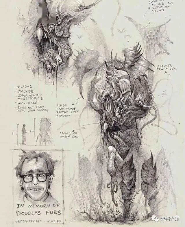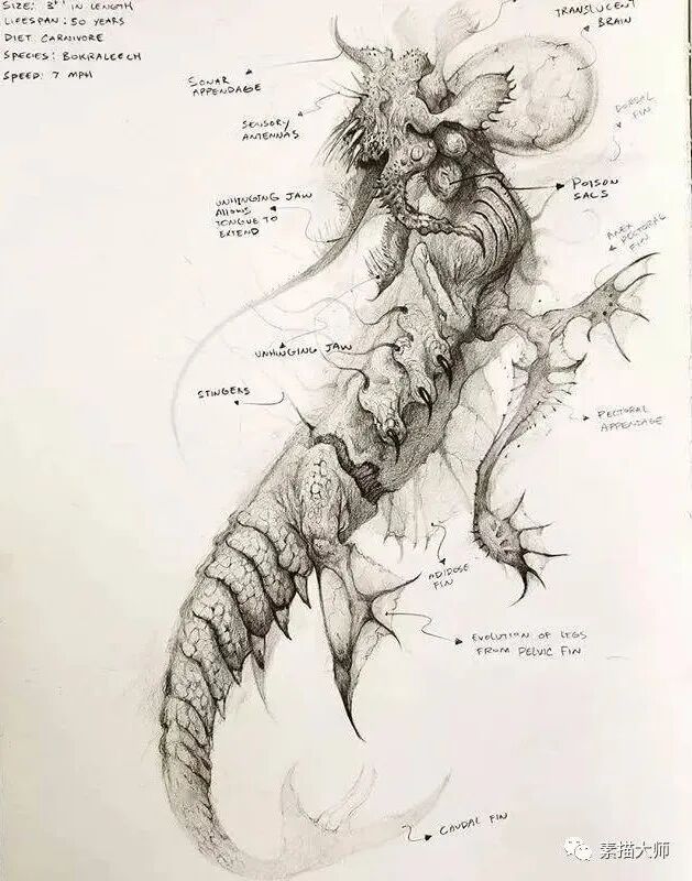 Bobby 跟许多小男孩一样,从小对诸如恐龙之类的怪物十分痴迷,也很喜欢看各种刺激眼球的怪兽电影。但是后来随着年龄的增长,他没有像别人一样对此失去兴趣,而是开始进一步去研究这些怪兽的骨骼、肌肉等内部结构。并且他通过画笔,将真实的动物与他幻想中的生物相结合,最后竟然整整画了500+幅的素描作品!