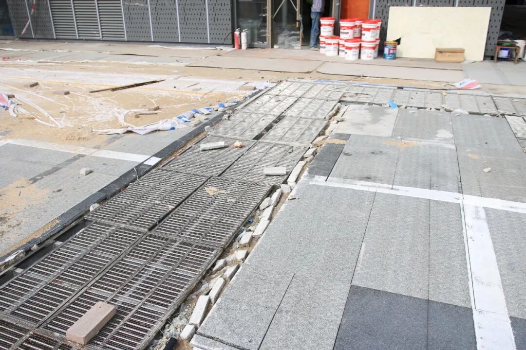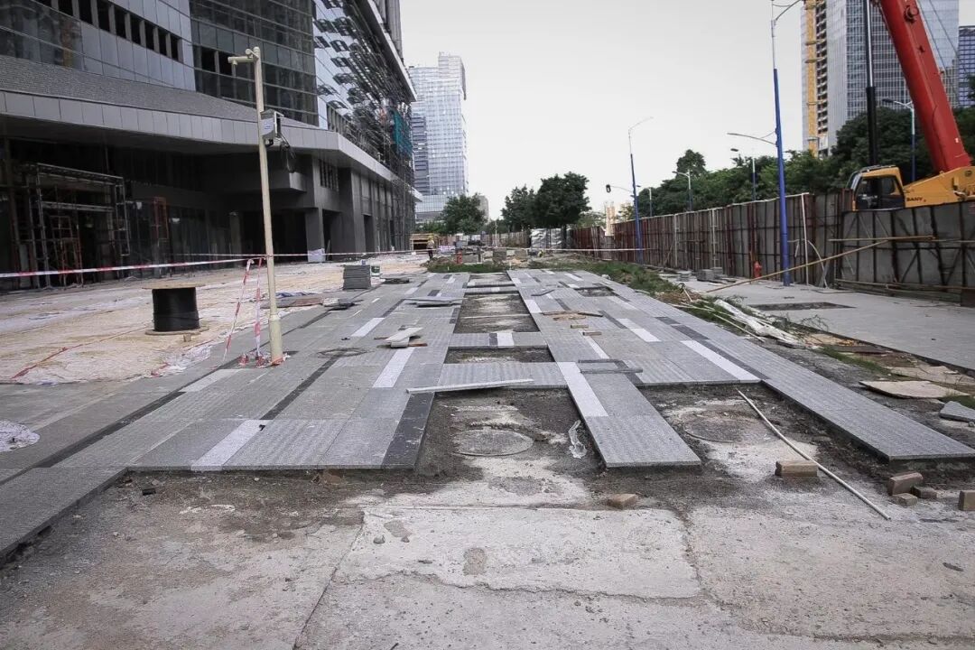 The plaza is the entrance from metro that people coming. The pavement used simple line to guide. Exquisite sculpture and construction. Step by step, feeling the fashion design.