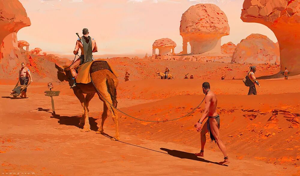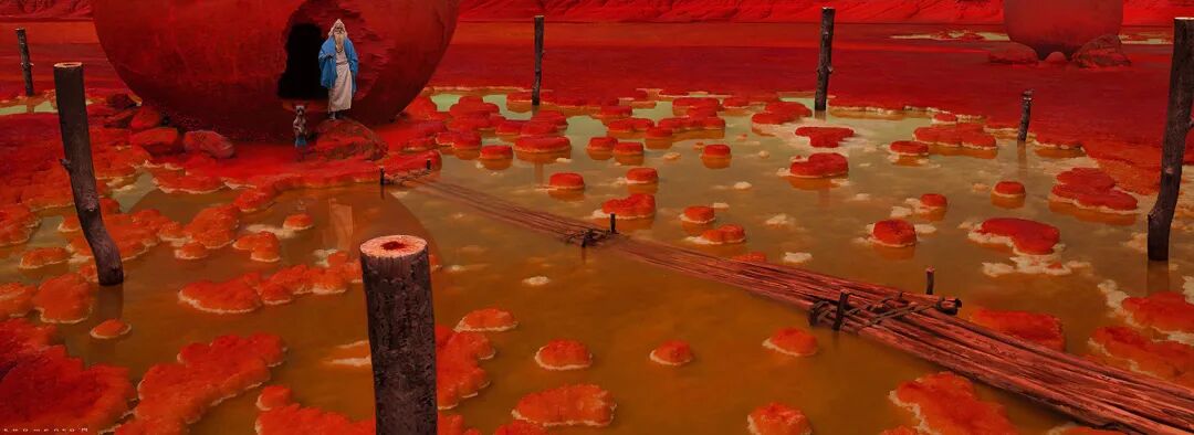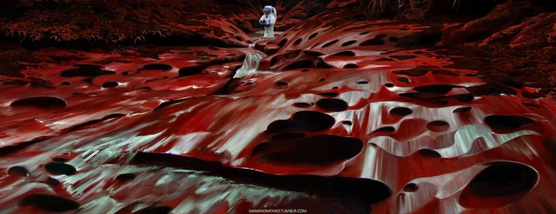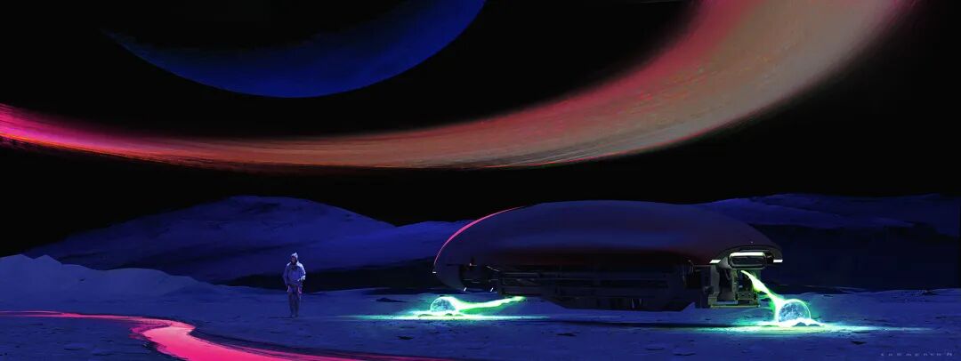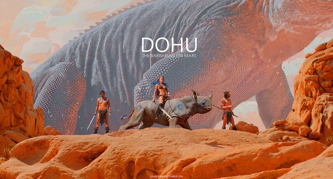他的“Barbarian on Mars”系列作品以橙红色为主色调,搭配过渡自然的相邻色,颜色丰富但整体画面并不显脏,反而氛围感满满。
