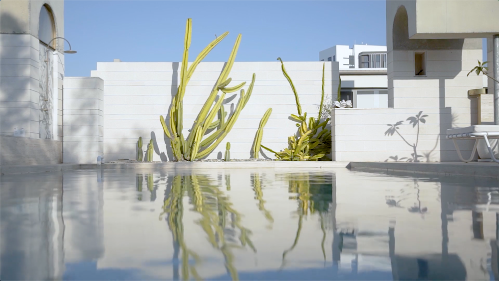 边上设置了一个可以乘凉的露台空间,背景是大白墙+绿色仙人掌 ▼