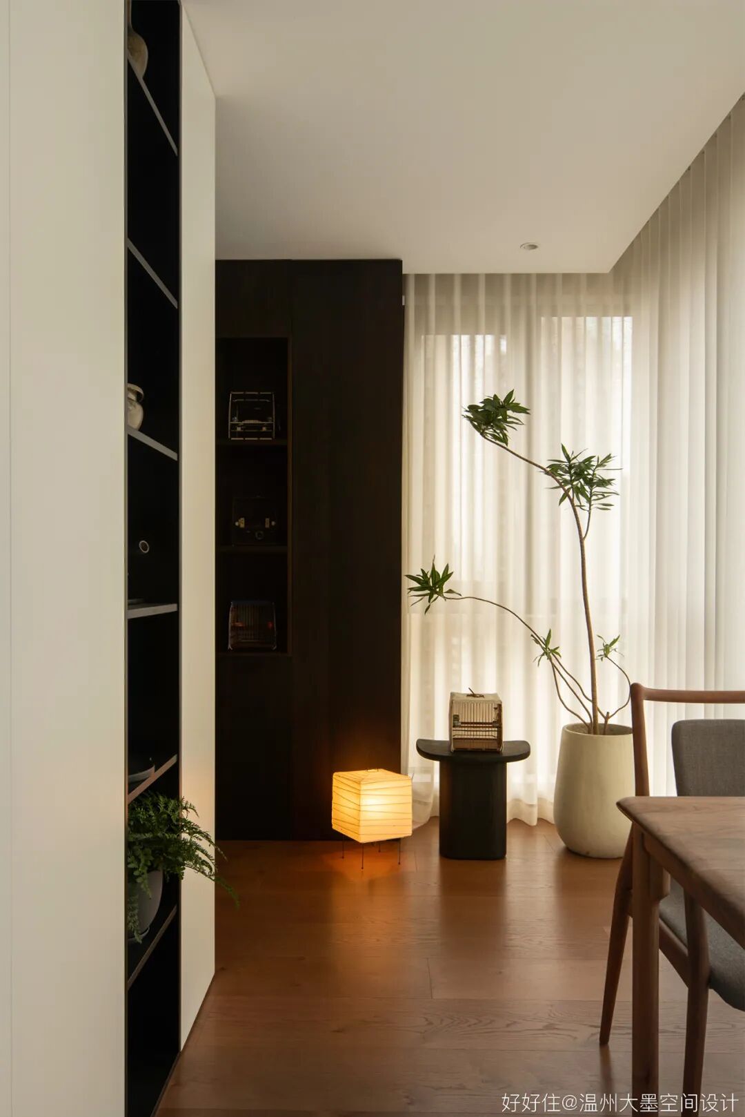 野口勇落地灯搭配浅色绿植盆栽,恰到好处的增添空间氛围感。