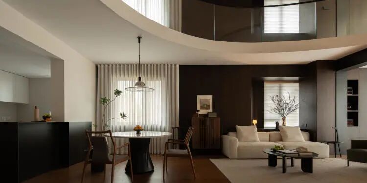 空间品质的灵魂,绝不在于材料和造型的堆砌。便用贴己的设计、点睛材料将需求与硬伤都颇多的跃层空间,打造成了蕴含新中式美学的治愈之家。