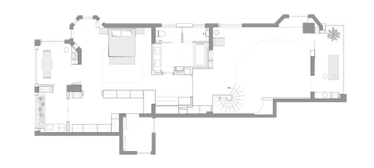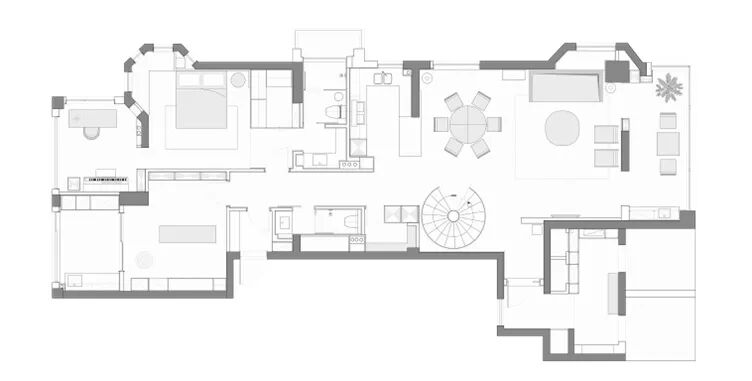 本案空间为320㎡的跃层,是一个狭长的横向布局。