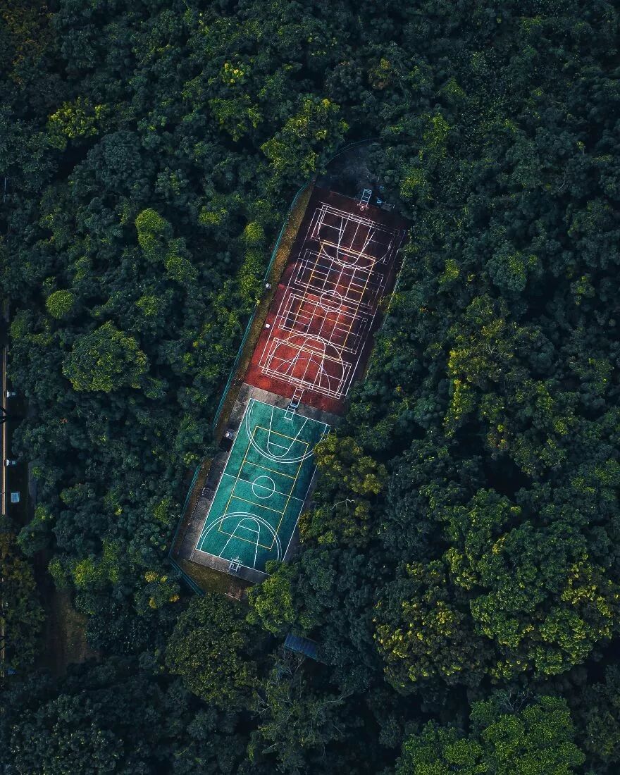 森林中的篮球场,@i.ride.to.drone (新加坡)