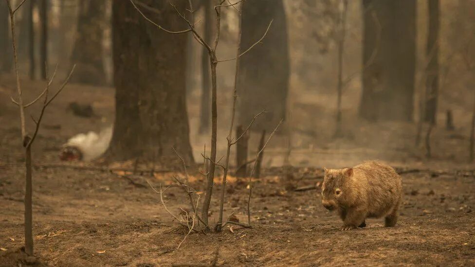 △大火过后,孤零零的森林只剩下袋熊一种物种。图/BBC NEWS