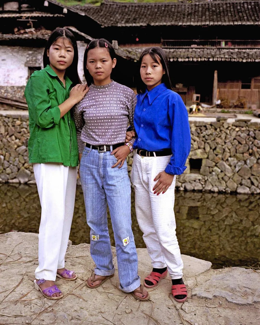 穿着90年代流行的皮夹克、宽大西服、喇叭裤、牛仔衣···面庞浮现的青涩,和不加修饰的乡村背景一起,呈现出上世纪末中国城乡的真实景象,20年后看,依旧让人感慨。