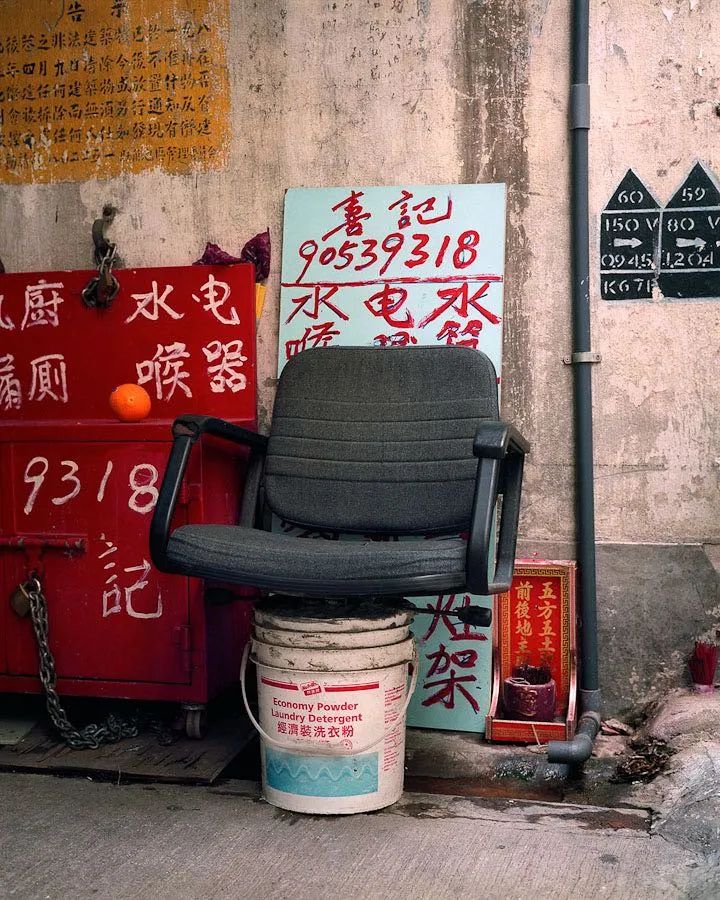 1996年沃夫来到北京,在胡同里溜达时注意到一类特殊的椅子:有些用残破的椅子改造而成,有些就地取材,用木头、石头、砖头、电线和破布搭成,他觉得很有意思,还捡了两把带回香港。