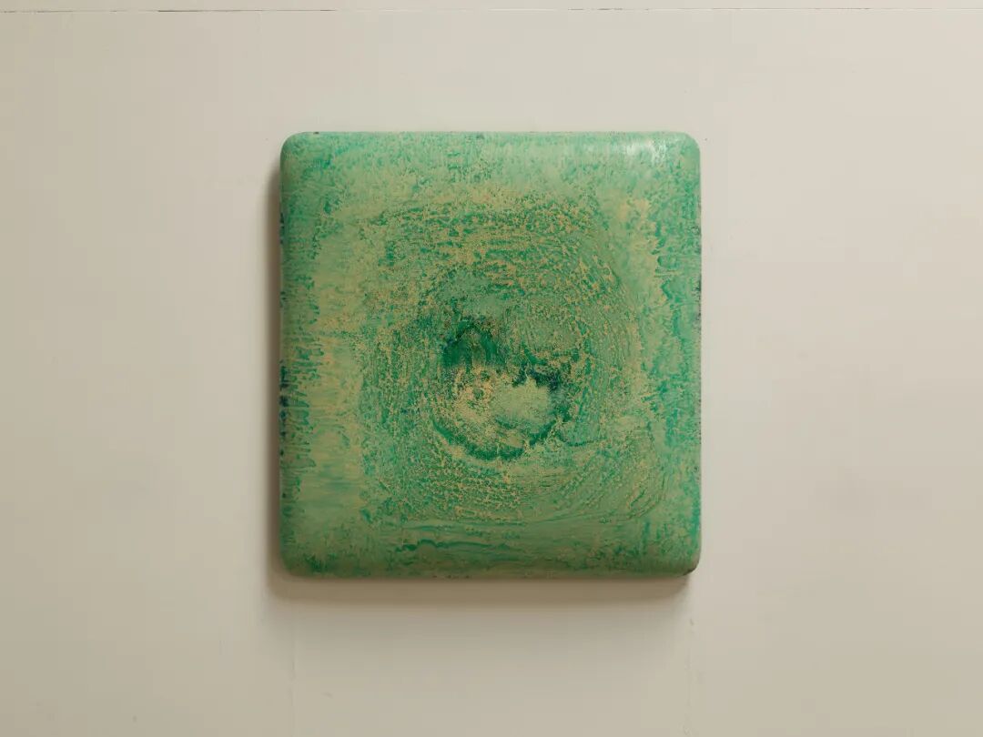 苏笑柏 Su Xiaobai,田园-4 Bucolic Green - 4,油彩、漆、麻、木 Oil, lacquer, linen, and wood,126 x 119 x 17 cm,2020年,致谢艺术家及耿画廊