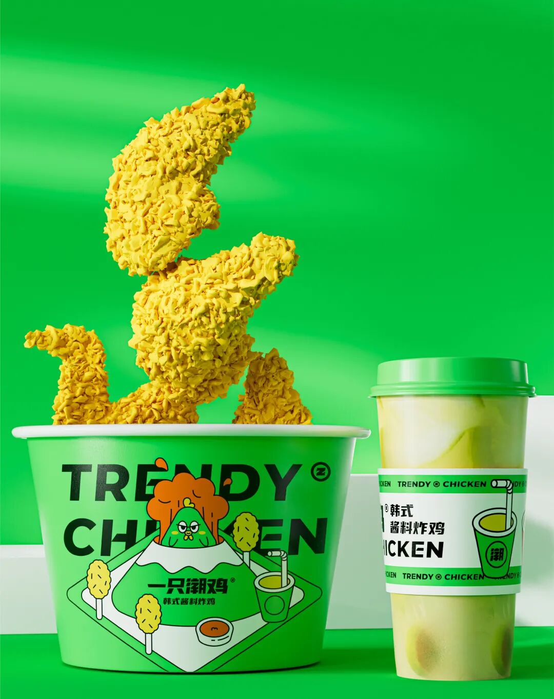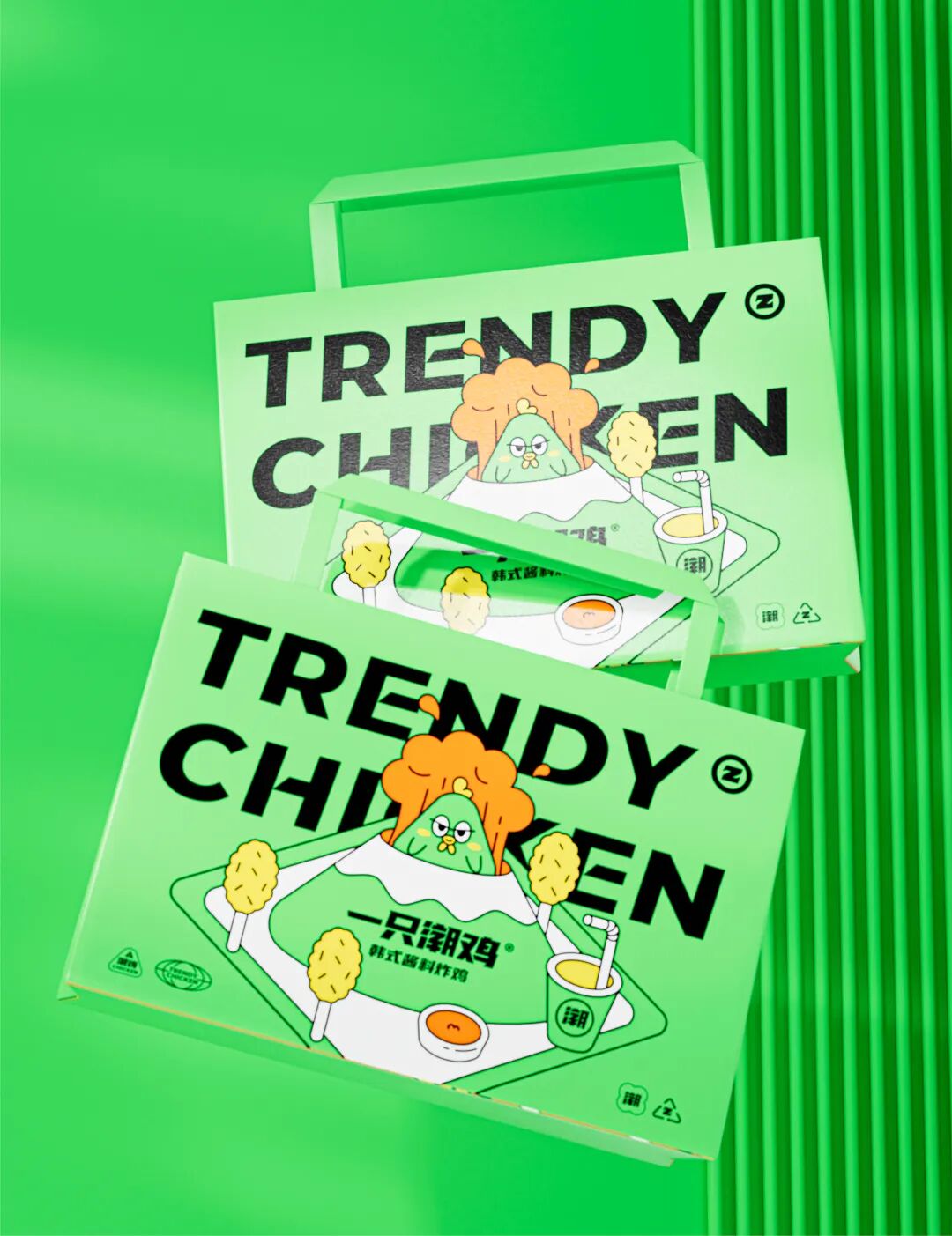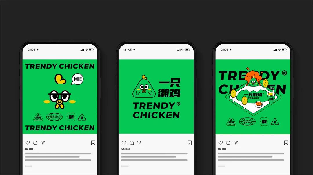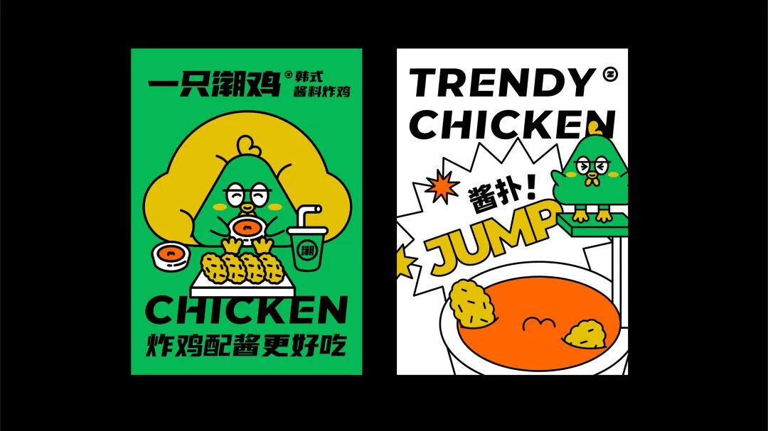 年轻、潮流、好玩是一只潮鸡希望带给消费者的情感表达。在设计过程中避免与其他同品类品牌出现雷同化,在色彩、IP形象等方面进行差异化处理。让人们通过品牌调性立马想到这个品牌或者产品。让品牌好吃、好看、好玩、好分享,进入消费者的生活,让消费者一起分享快乐。品牌需要建立统一风格,打造品牌视觉体系,注重品牌推广营销和宣传,创造让人惊喜的炸鸡品牌。