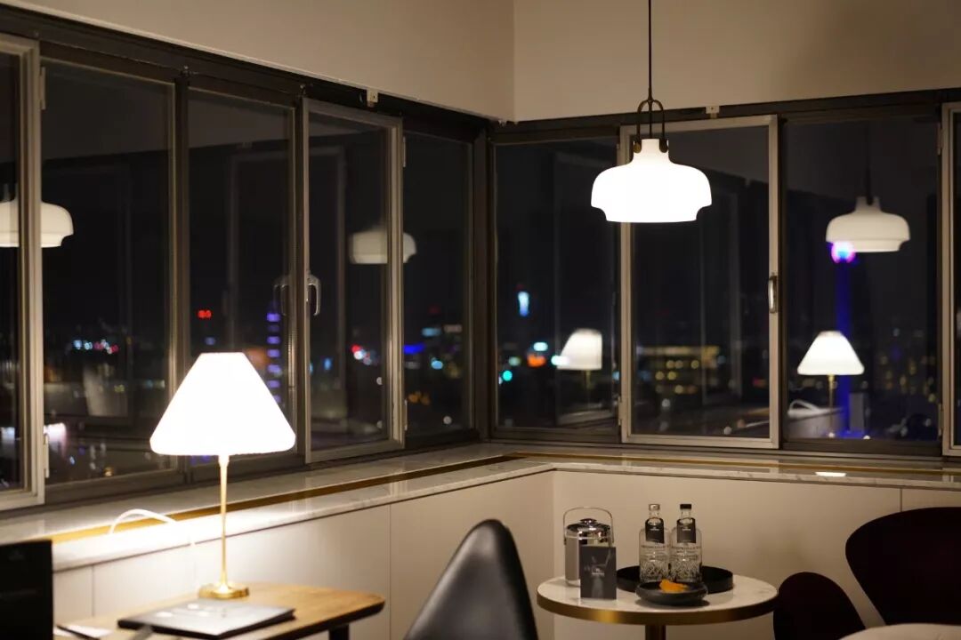 Radisson对于酒店的贡献还不只是在建筑形态上,更在于酒店的室内风貌。其在AJ的主持下将空间肌理化繁为简,用轻盈通透的悬挂式旋转楼梯、大块面的玻璃屏风和空间留白,让室内更似宇宙空间站,极具未来感、也更烘托空间本身的美感。
