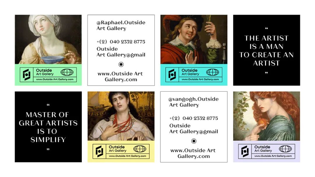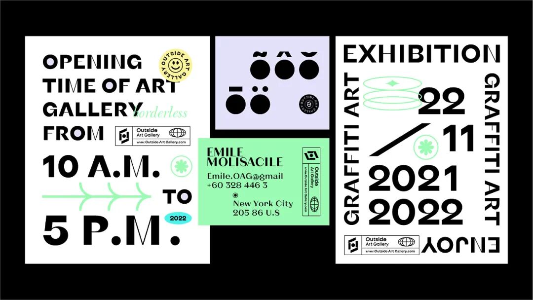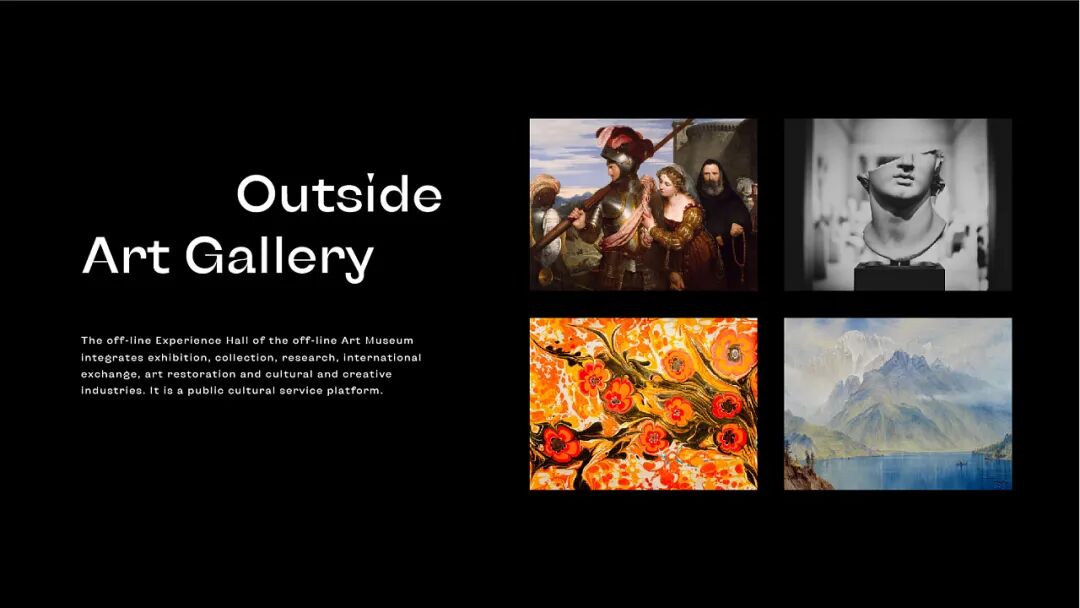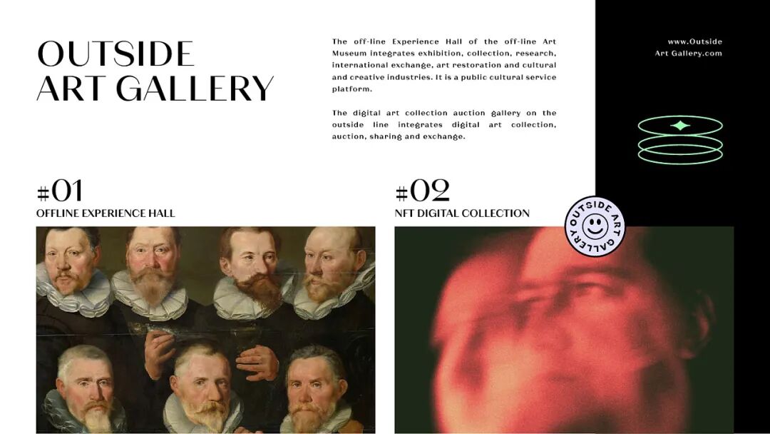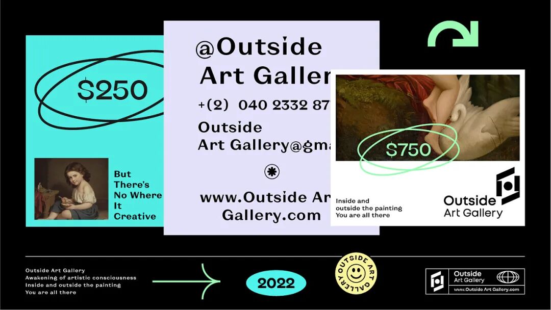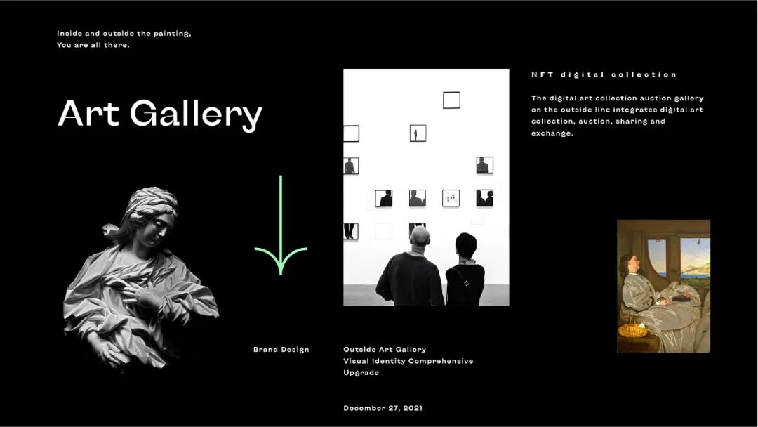 今天就来分享一个Outside Art Gallery(画外美术馆)的品牌视觉形象设计,从线下体验馆/Offline experience Hall到线上数字艺术收藏拍卖馆,整体视觉都十分个性、现代,仿佛也在诉说美术馆本身的“性格”设定,需要我们不断体会。