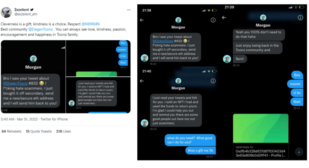 有普通持有者钱包被黑,社区大佬特意买下来直接送还给他;