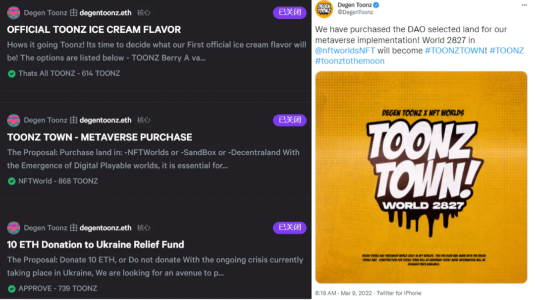 🔹由DAO投票决定如何购买元宇宙土地,开始在元宇宙里建设Toon Town,所有持有者将会收到元宇宙空投;